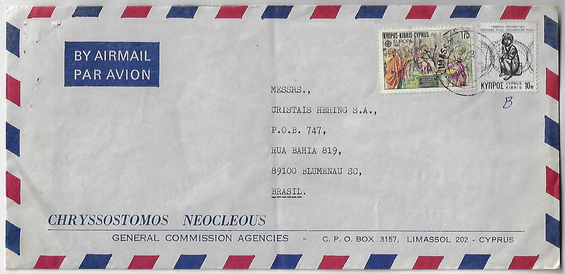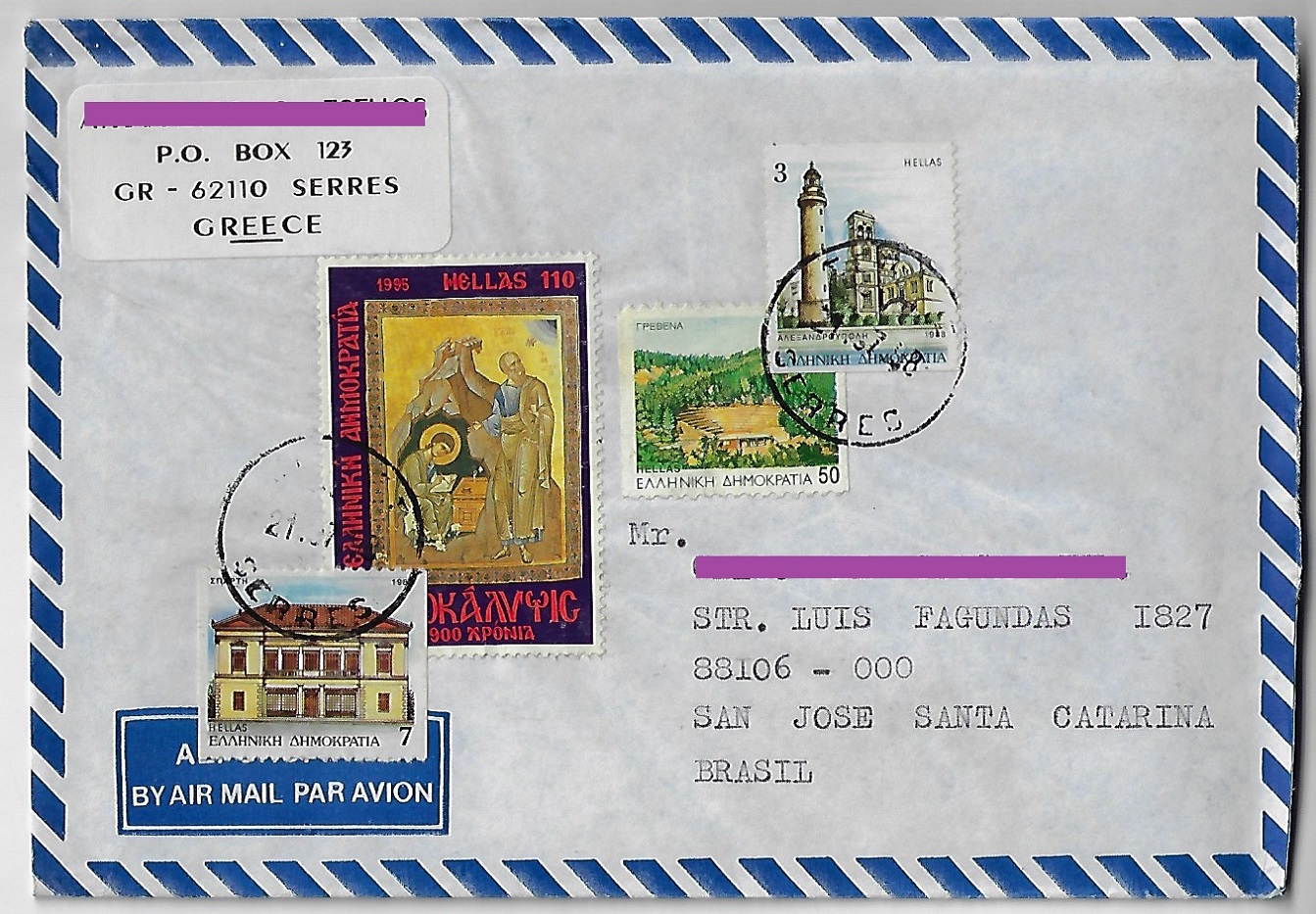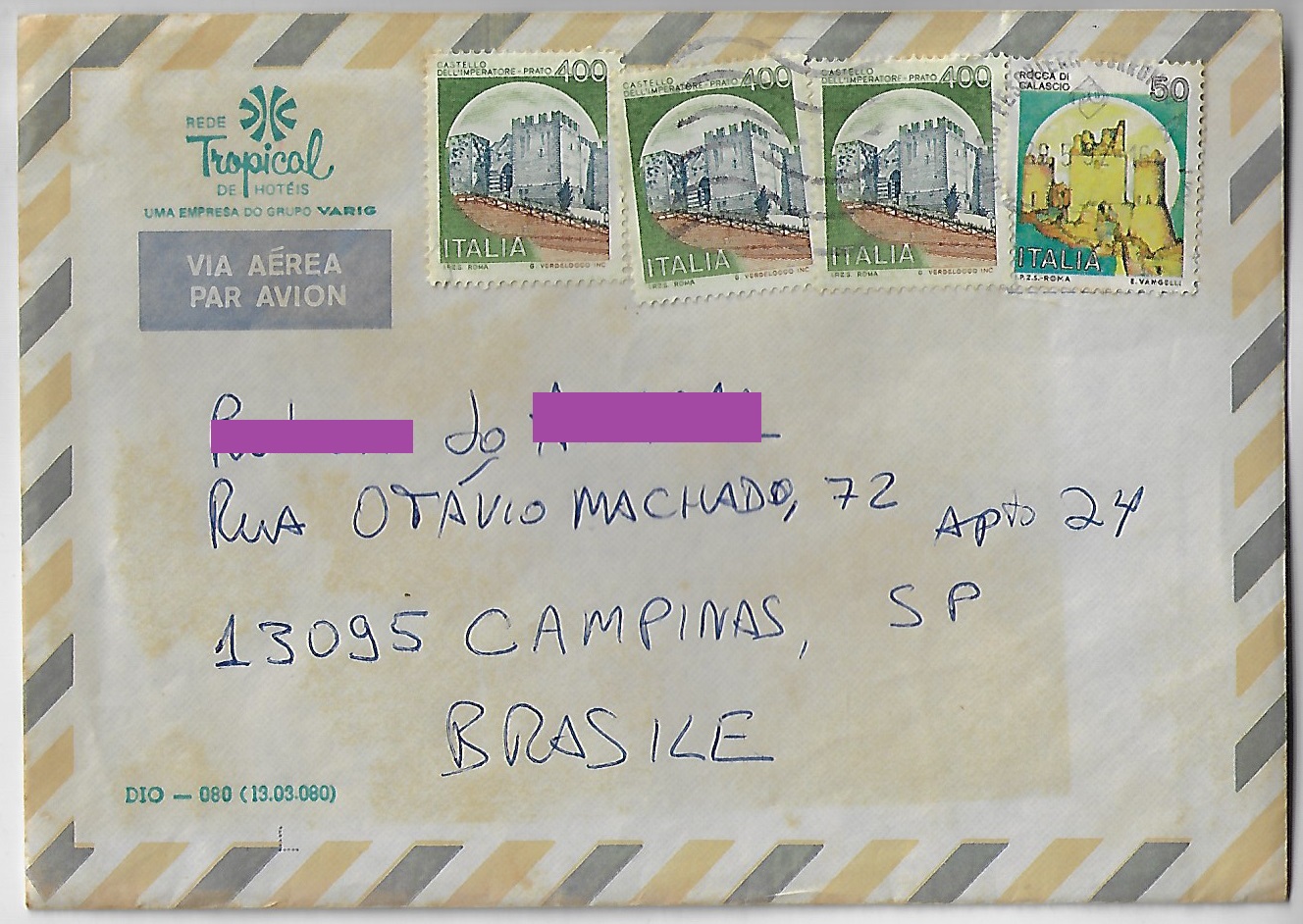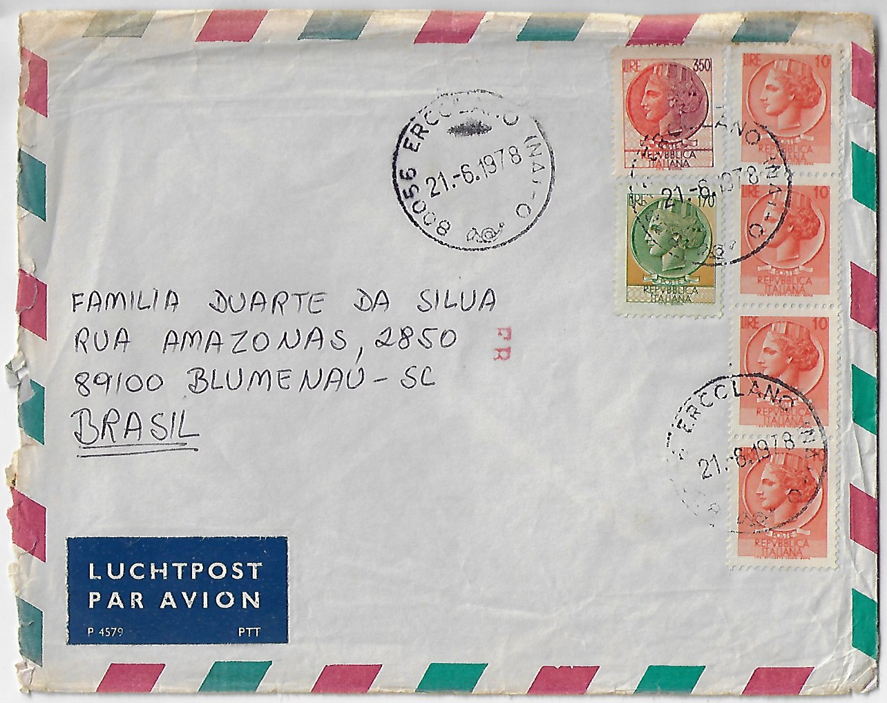 | 79076 | Vaticano, 1979, envelope aéreo enviado para Blumenau, porteado com 2 selos Série Esculturas: Péricles e Laocoonte | 10,00 | Foto |