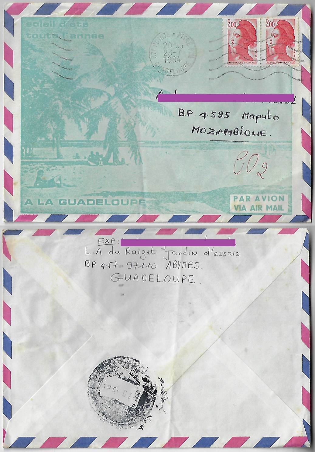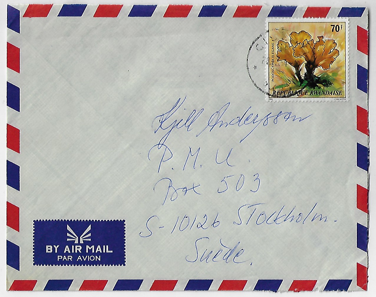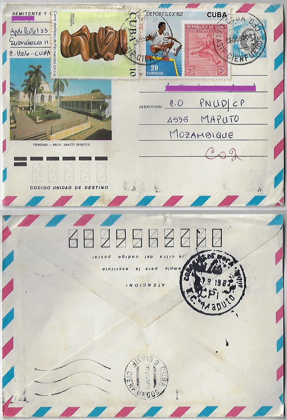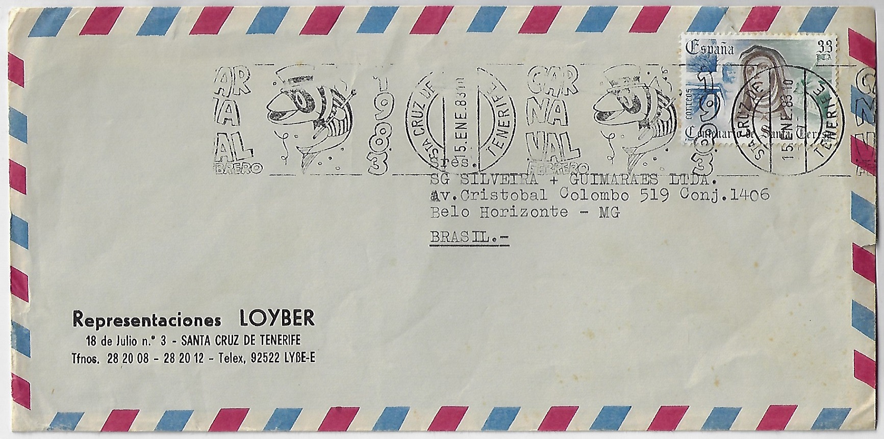 | 62032 | Zaire, 1984, envelope aéreo enviado de Kananga (5/6) para Thoune / Suíça, porteado com 5 selos Campeonato Mundial de Futebol, Natal e Escotismo | 10,00 | Foto |