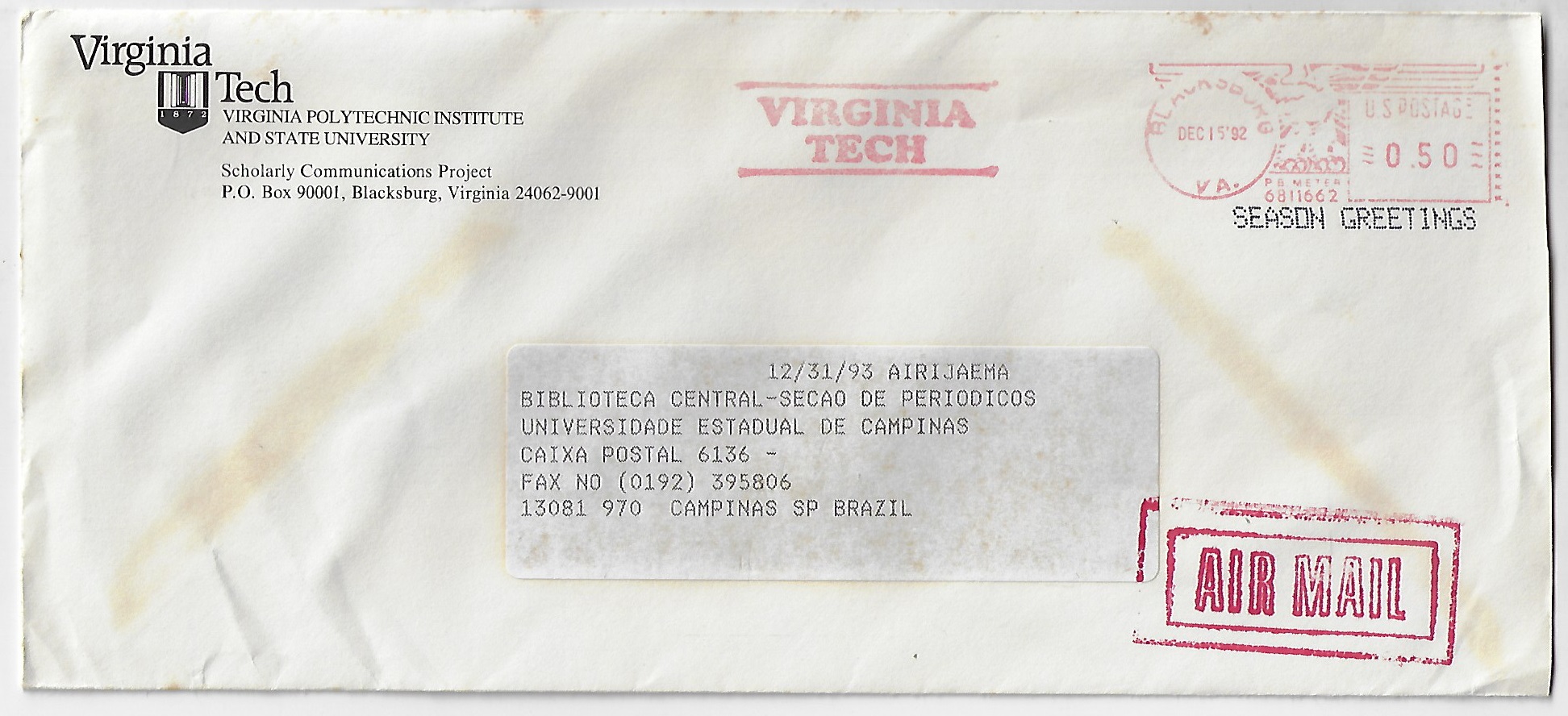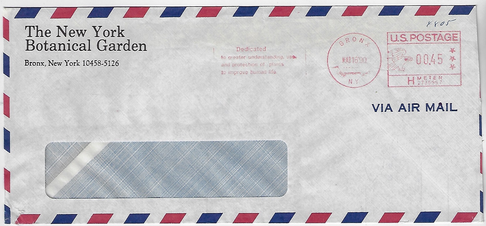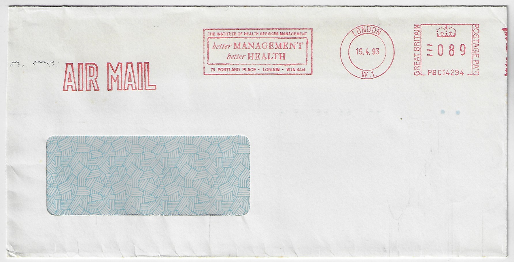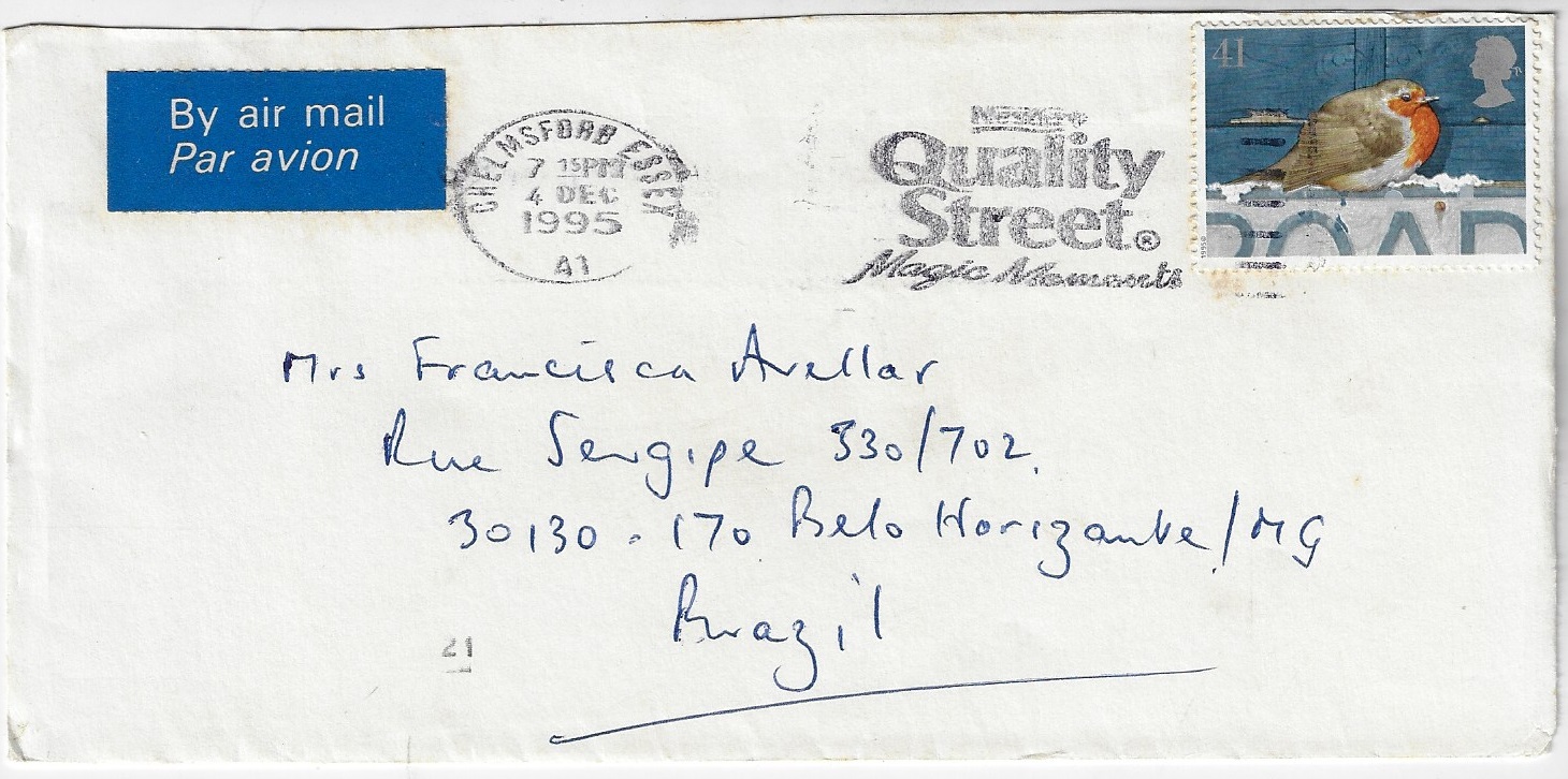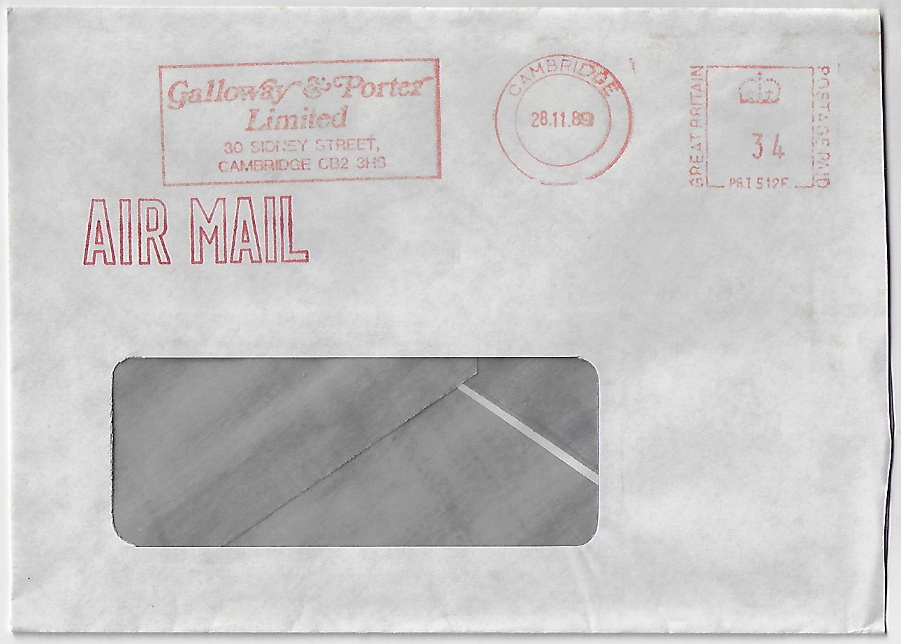 | 77755 | África do Sul, 1990, envelope aéreo enviado de East London (12/2) para Campinas, porteado com franquia mecânica Pitney Bowes-GB "6300" com slogan do First National Bank, logo Árvore Acácia e Sol | 10,00 | Foto |