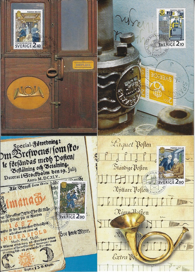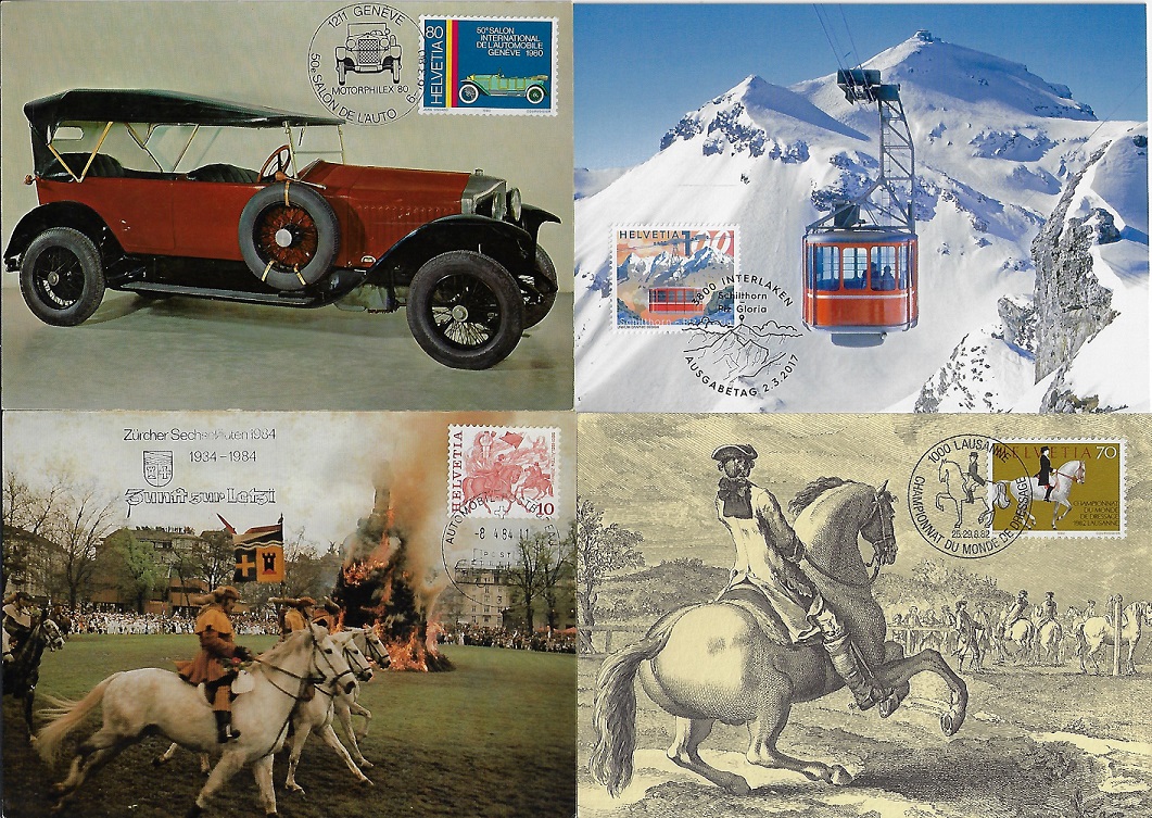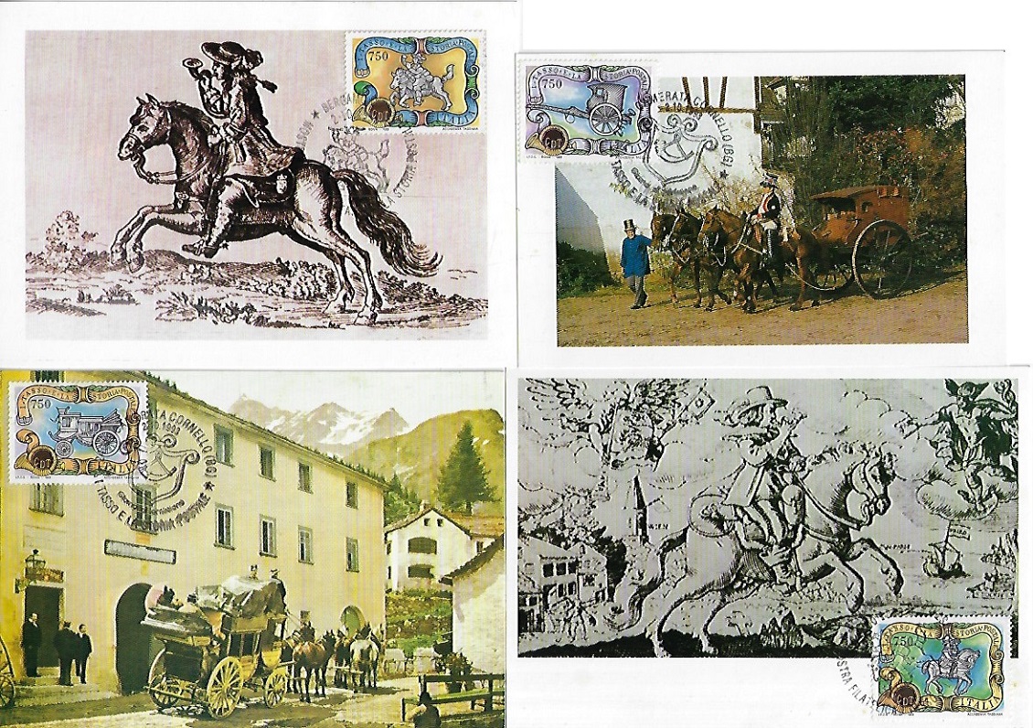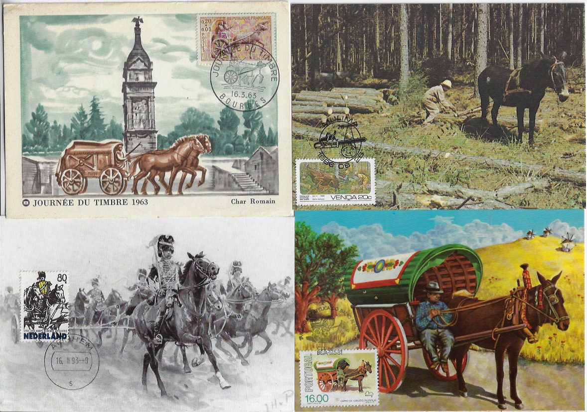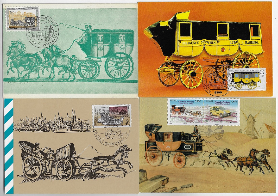 | 82642 | Alemanha, Alemanha Oriental, Bélgica e França, 1963/2013, 4 máximos postais alusivos a Transporte Postal, Diligência, Correio | 28,00 | Foto |