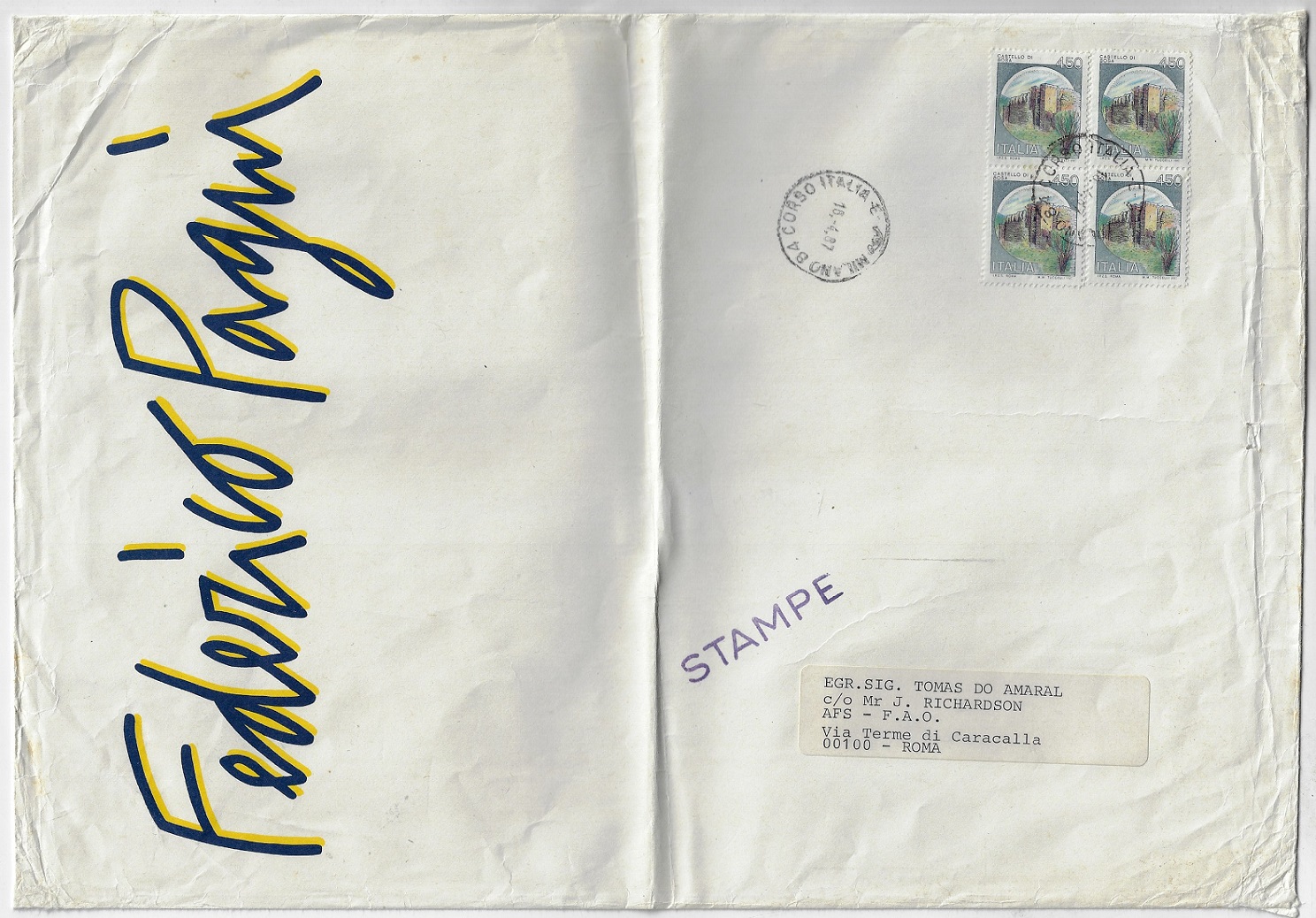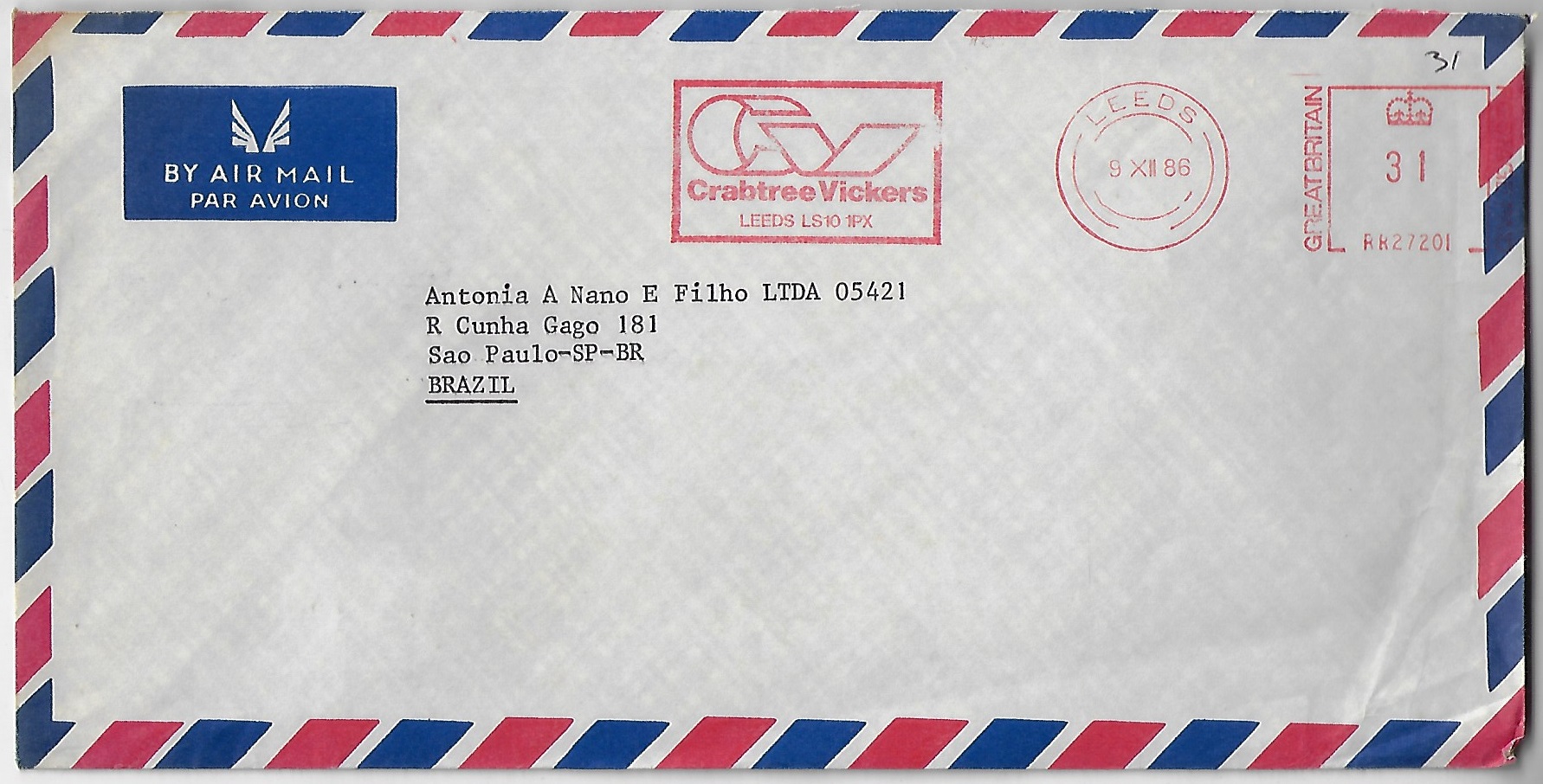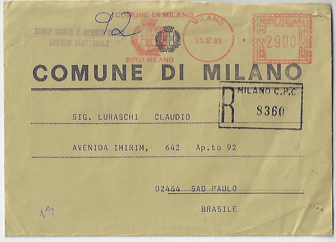 | 79309 | Vaticano, 1985, envelope aéreo enviado para São Paulo, porteado com franquia mecânica Lirma com slogan "Agência Internacional Fides", Fides significa Fé em Latim | 10,00 | Foto |