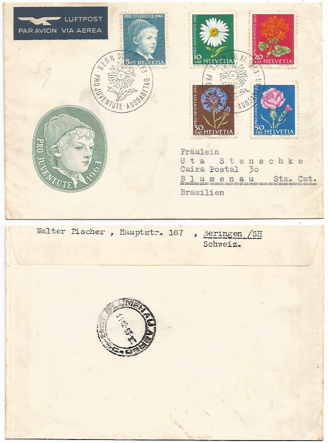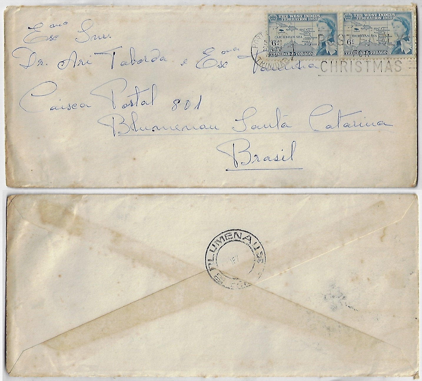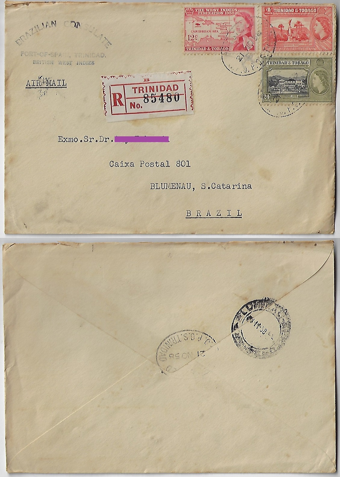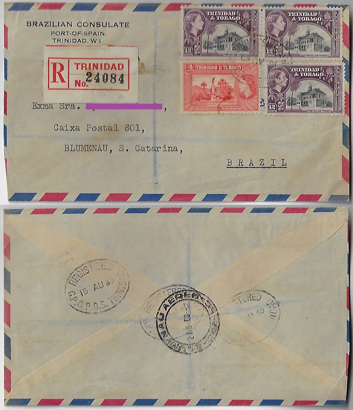 | 79132 | Venezuela, 1963, envelope aéreo registrado enviado de Caracas para Joinville, porteado com selos Correio Geral | 10,00 | Foto |