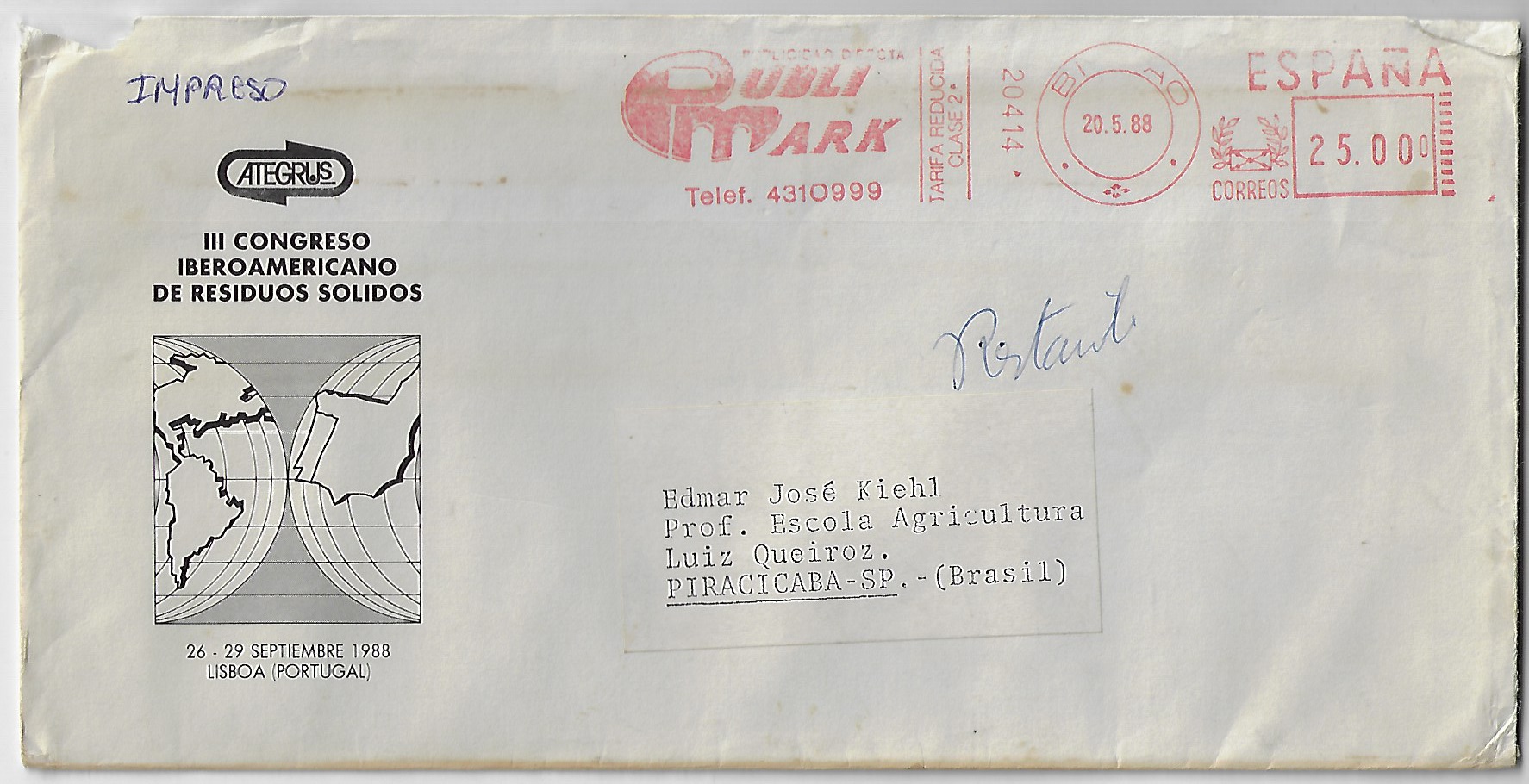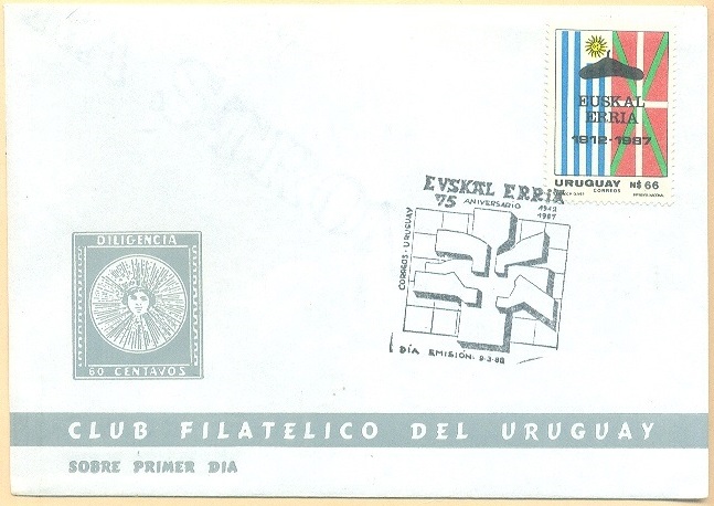 | 65746 | Uruguai, 1987, envelope com carimbo de 1º dia alusivo ao País Basco | 3,00 | Foto |