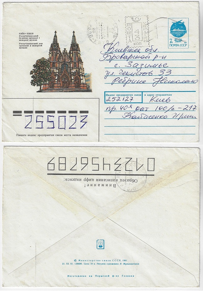| 65747 | URSS, 1991, inteiro postal circulado internamente retratando a Catedral de São Nicolau, em Kiev / Ucrânia | 10,00 | Foto |