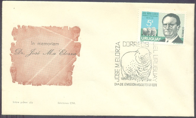 | 65816 | Uruguai, 1971, envelope com carimbo de 1º dia alusivo ao criador de ovelhas José Maria Elorza | 3,00 | Foto |