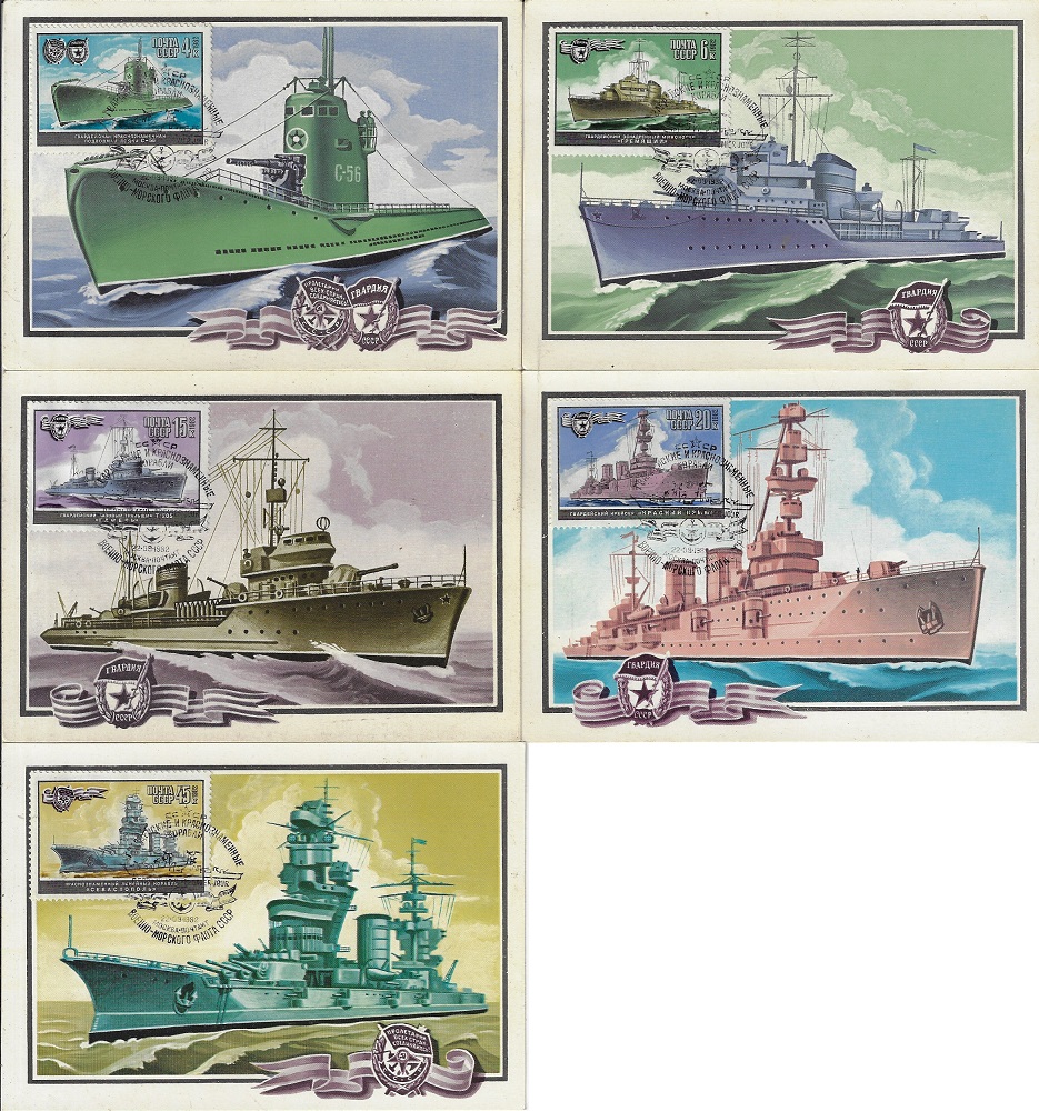 | 65858 | URSS, 1982, série de 5 Máximos Postais figurando Submarino e outros Navios de Guerra | 35,00 | Foto |