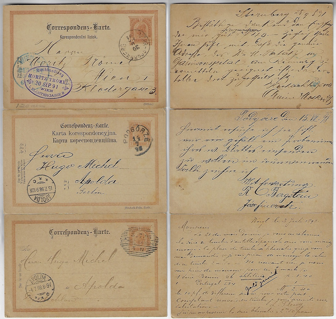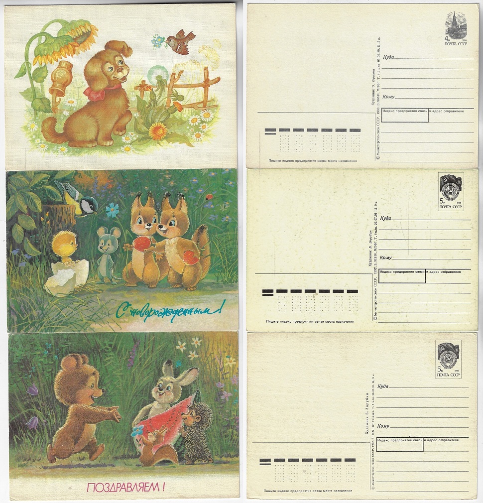 | 84469 | URSS, 1990/1992, 3 inteiros postais tipo bilhete alusivos a animais e fábulas | 22,00 | Foto |