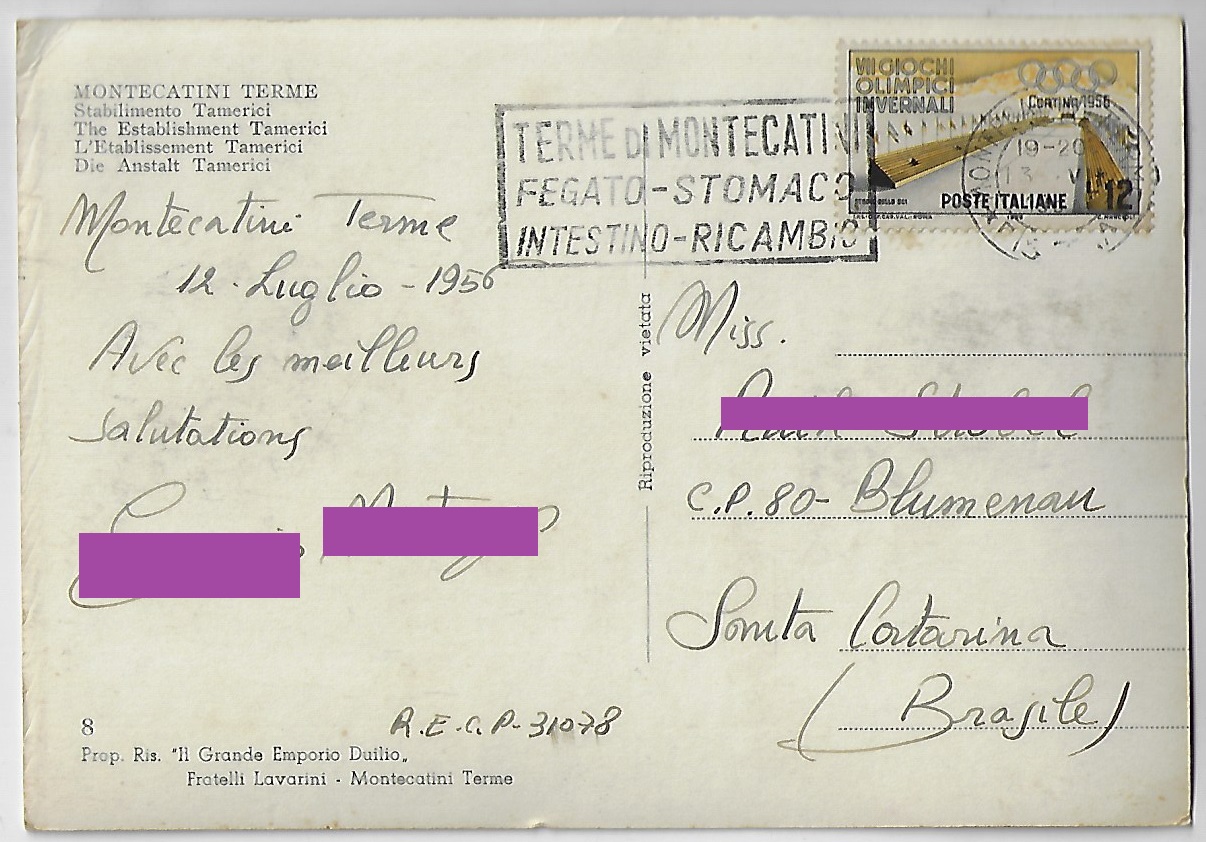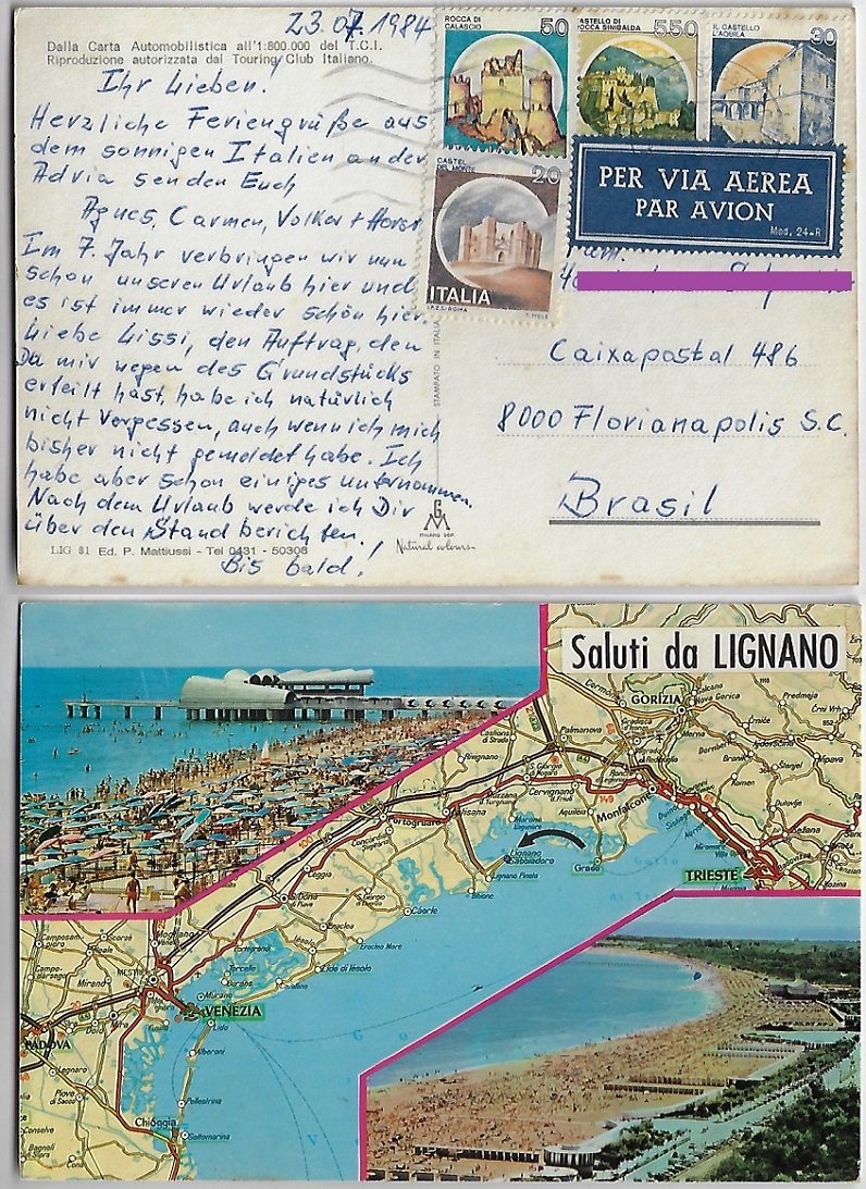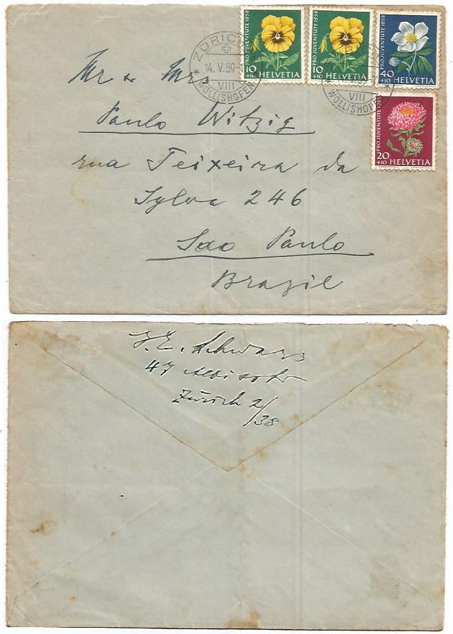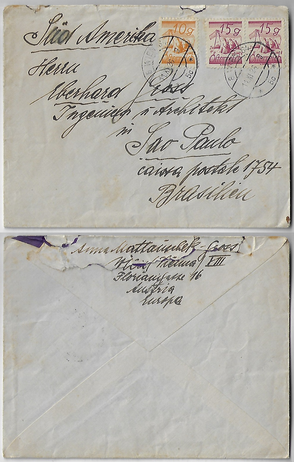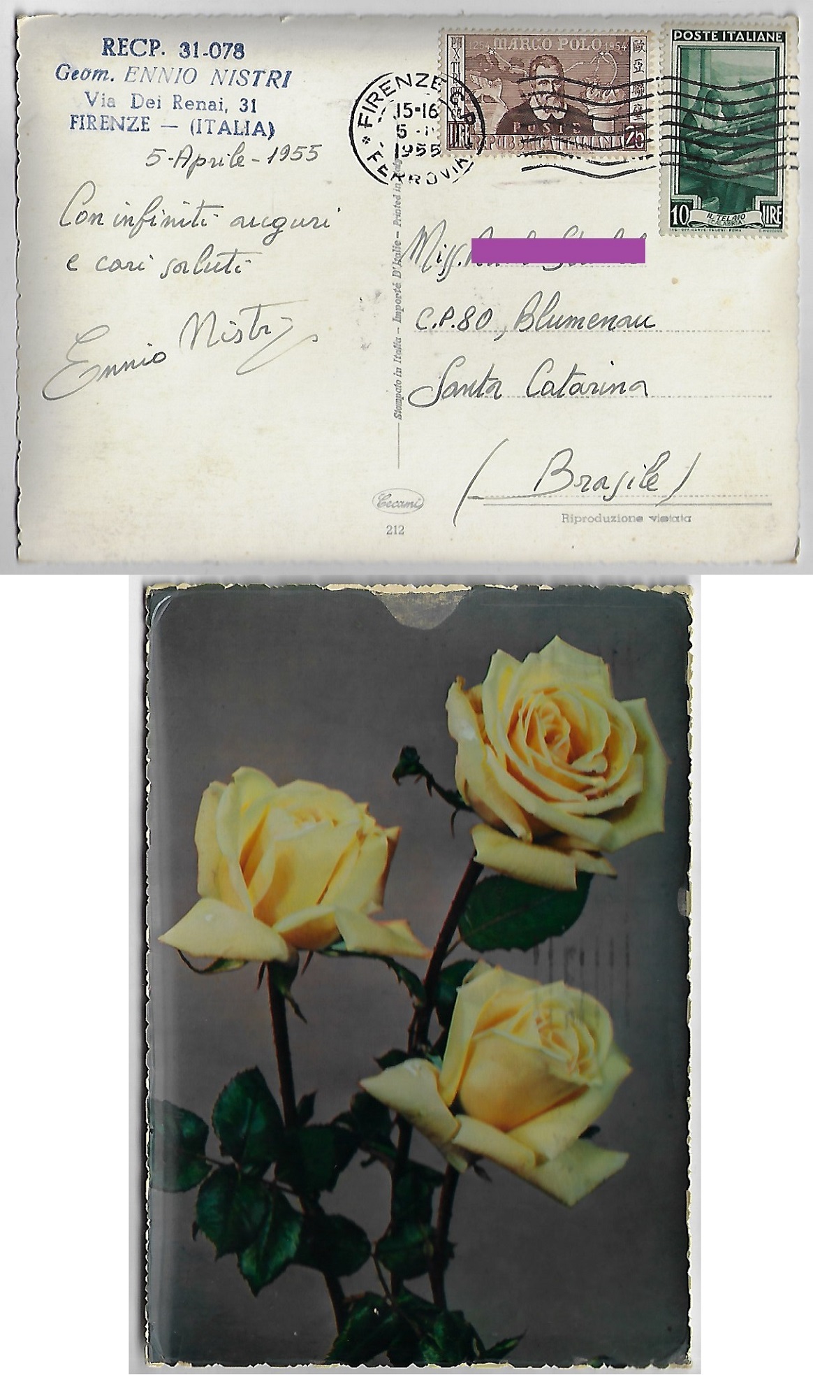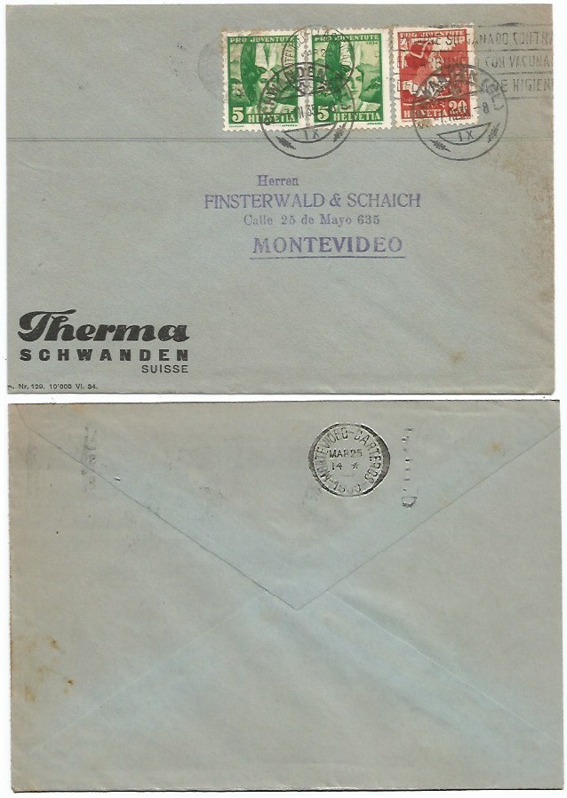 | 79722 | Uruguai, 1954, envelope aéreo de Guillermo Klimesch & Hijo enviado de Montevidéu para Blumenau (1/7), porteado com 2 selos 7 Centésimos, Entrada para a Cidadela | 10,00 | Foto |