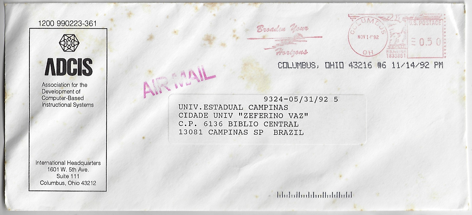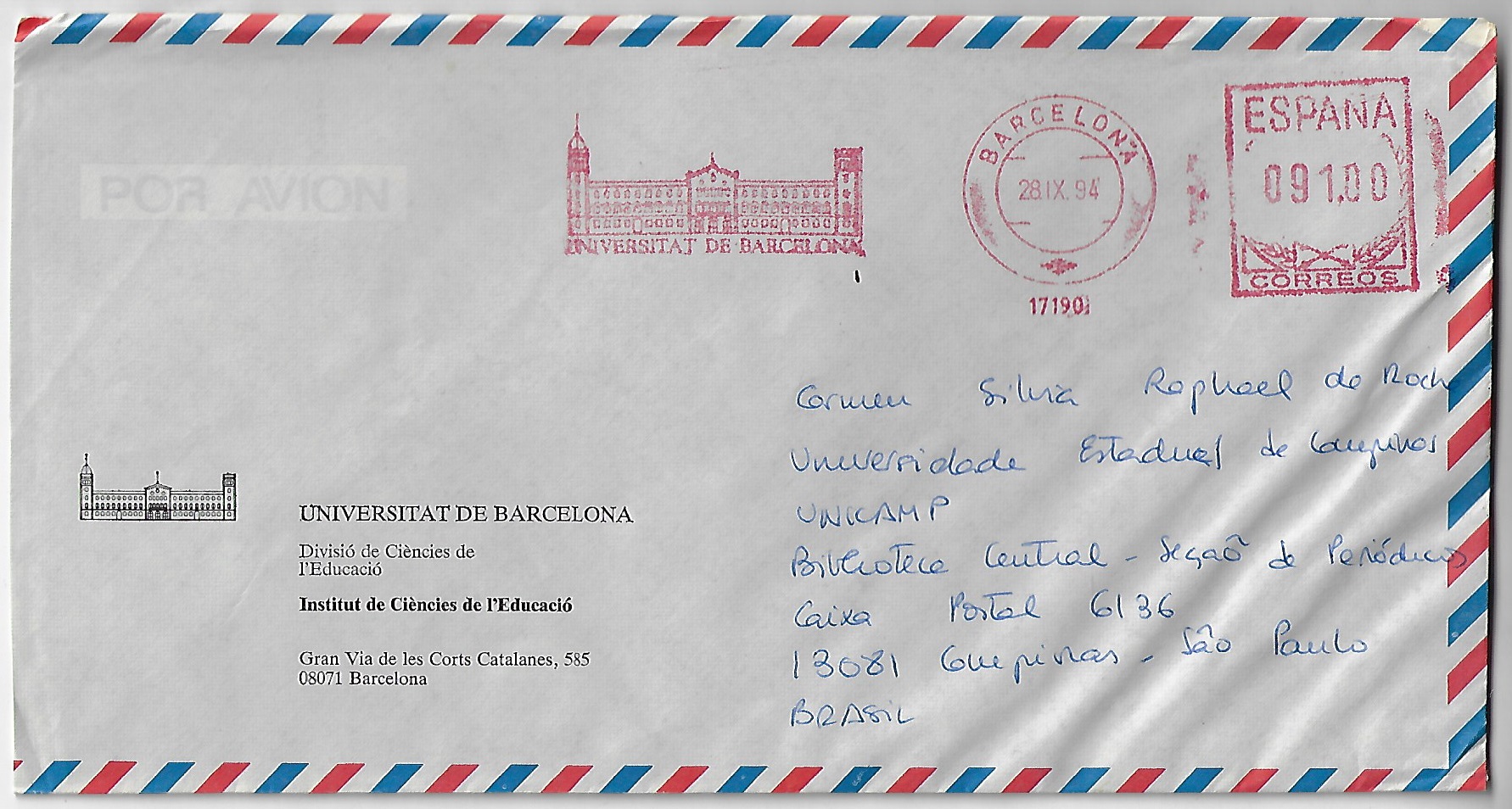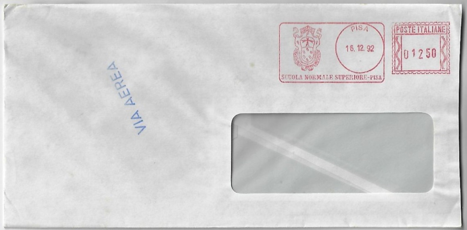 | 78083 | Vaticano, 1992, envelope aéreo do ICCRO (International Catholic Charismatic Renewal Offices) enviado para São Paulo, porteado com franquia mecânica Audion com slogan ICCRO / Palácio da Chancelaria, Ave, Pomba | 10,00 | Foto |