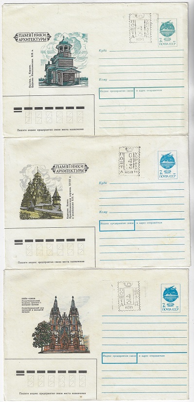 | 73519 | URSS, 1991, 3 inteiros postais retratando Catedral de São Nicolau em Kiev / Ucrânia e outras igrejas, Monumentos da Arquitetura | 20,00 | Foto |