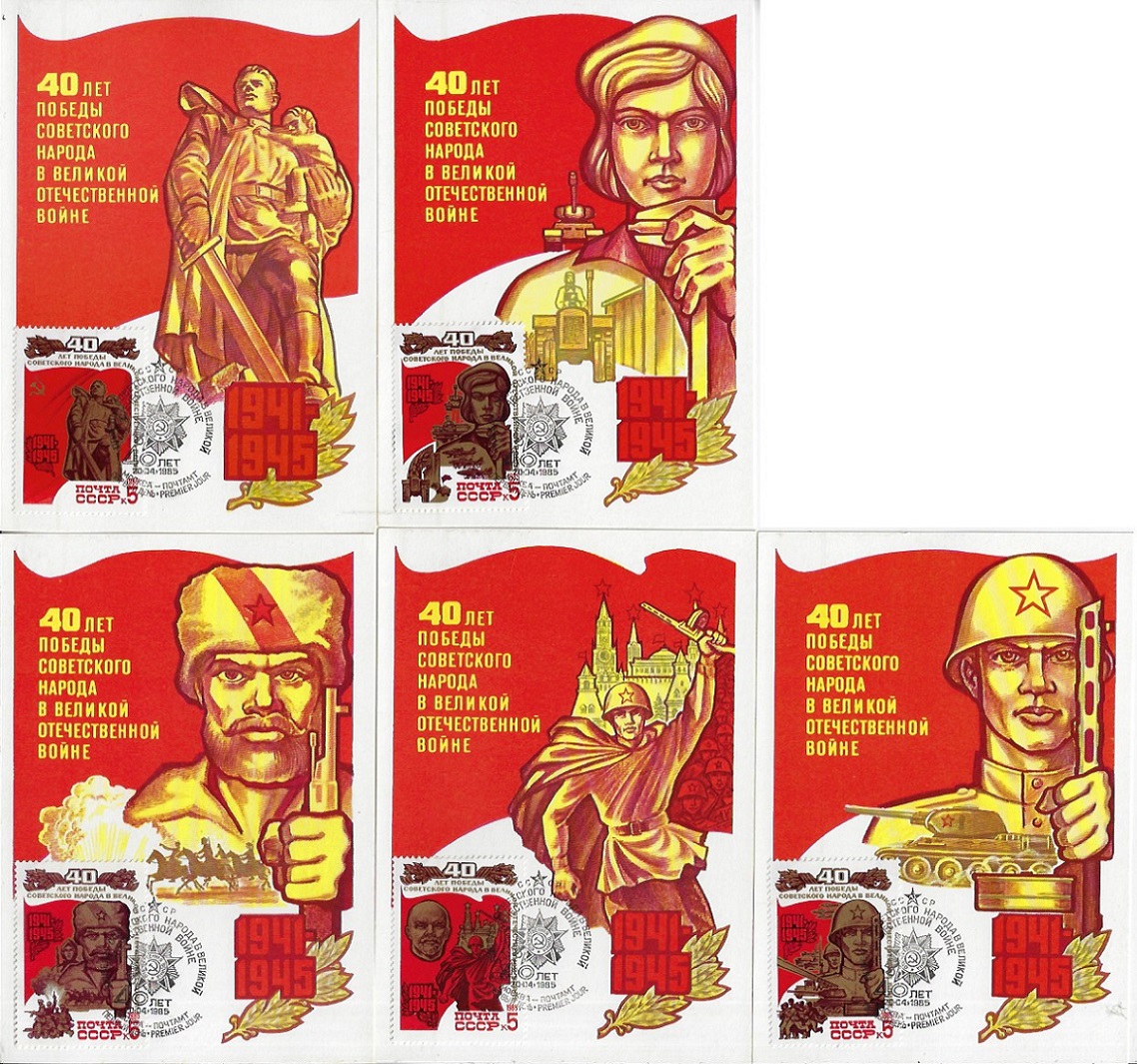 | 73538 | URSS, 1985, série completa com 5 Máximos Postais alusivos aos 40 Anos da Vitória na 2ª Guerra Mundial | 35,00 | Foto |