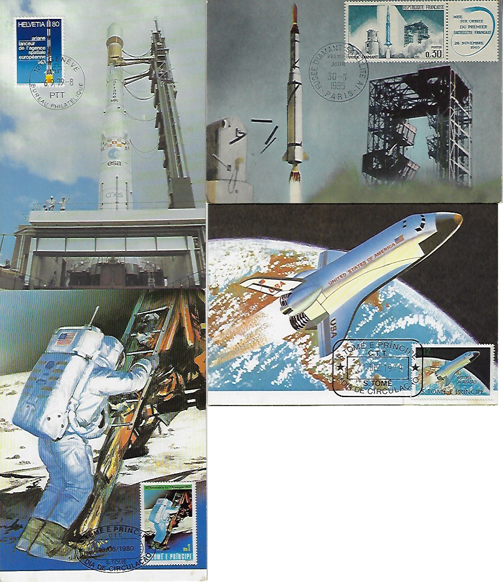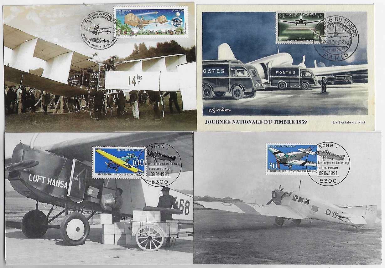 | 74621 | Alemanha, Brasil e França, 1959/2006, 4 máximos postais alusivos a Transporte, Aviação, Embraer, 1º Vôo, Fokker, Junkers, 14 Bis | 28,00 | Foto |
