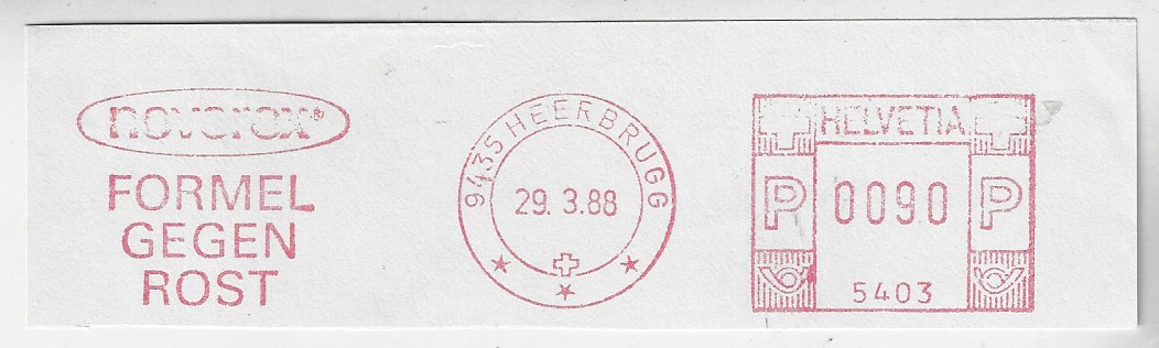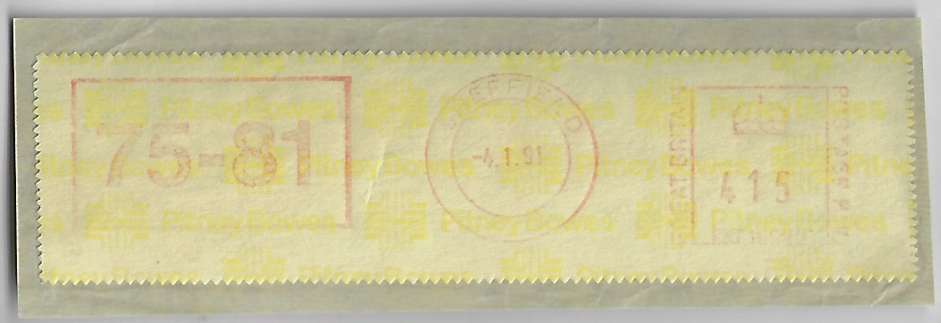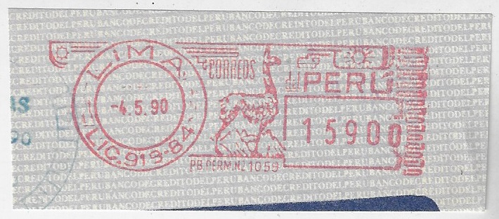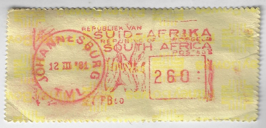 | 75488 | África do Sul, 1981, etiqueta da Pitney Bowes com franquia mecânica do modelo "R" aplicada invertida, antílope Springbok (Cabra-de-Leque), de Johannesburg | 10,00 | Foto |