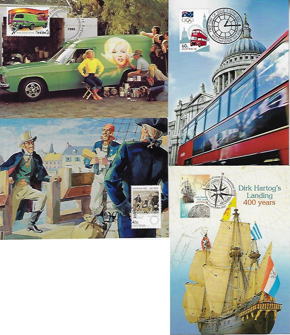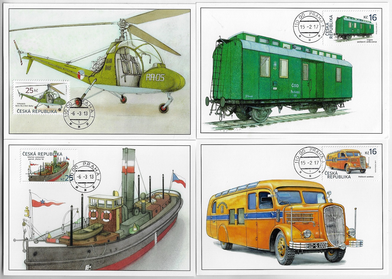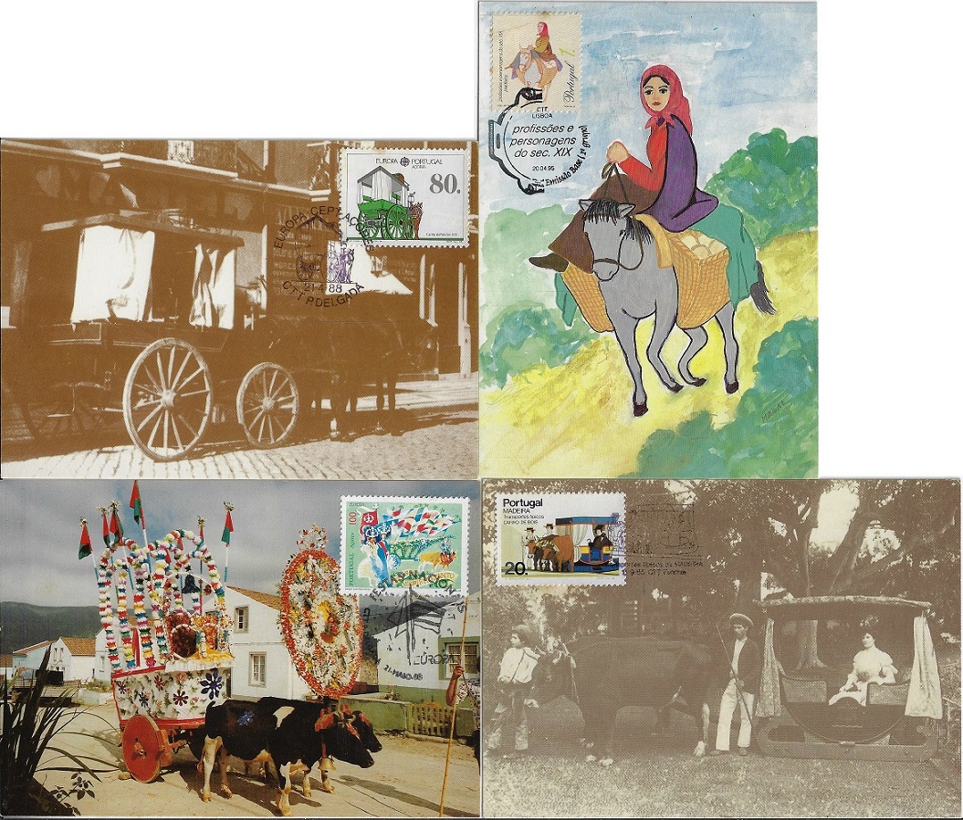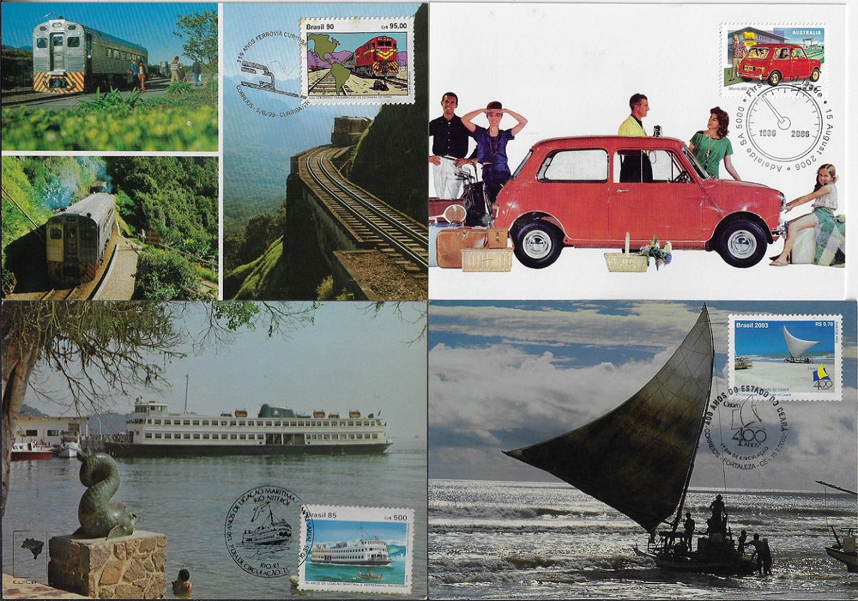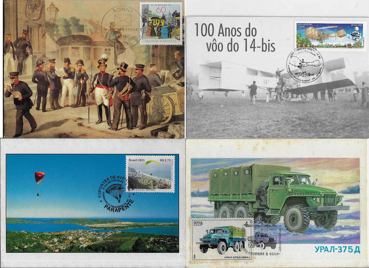 | 84013 | Alemanha, Brasil e URSS, 1981/2006, 4 máximos postais alusivos a Transporte, Carruagem, Caminhão, Avião 14 Bis, Parapente | 28,00 | Foto |