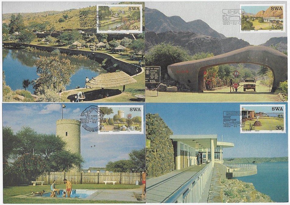 | 77262 | África do Sudoeste (atual Namíbia), 1987, série completa de 4 máximos postais, Pontos Turísticos | 28,00 | Foto |