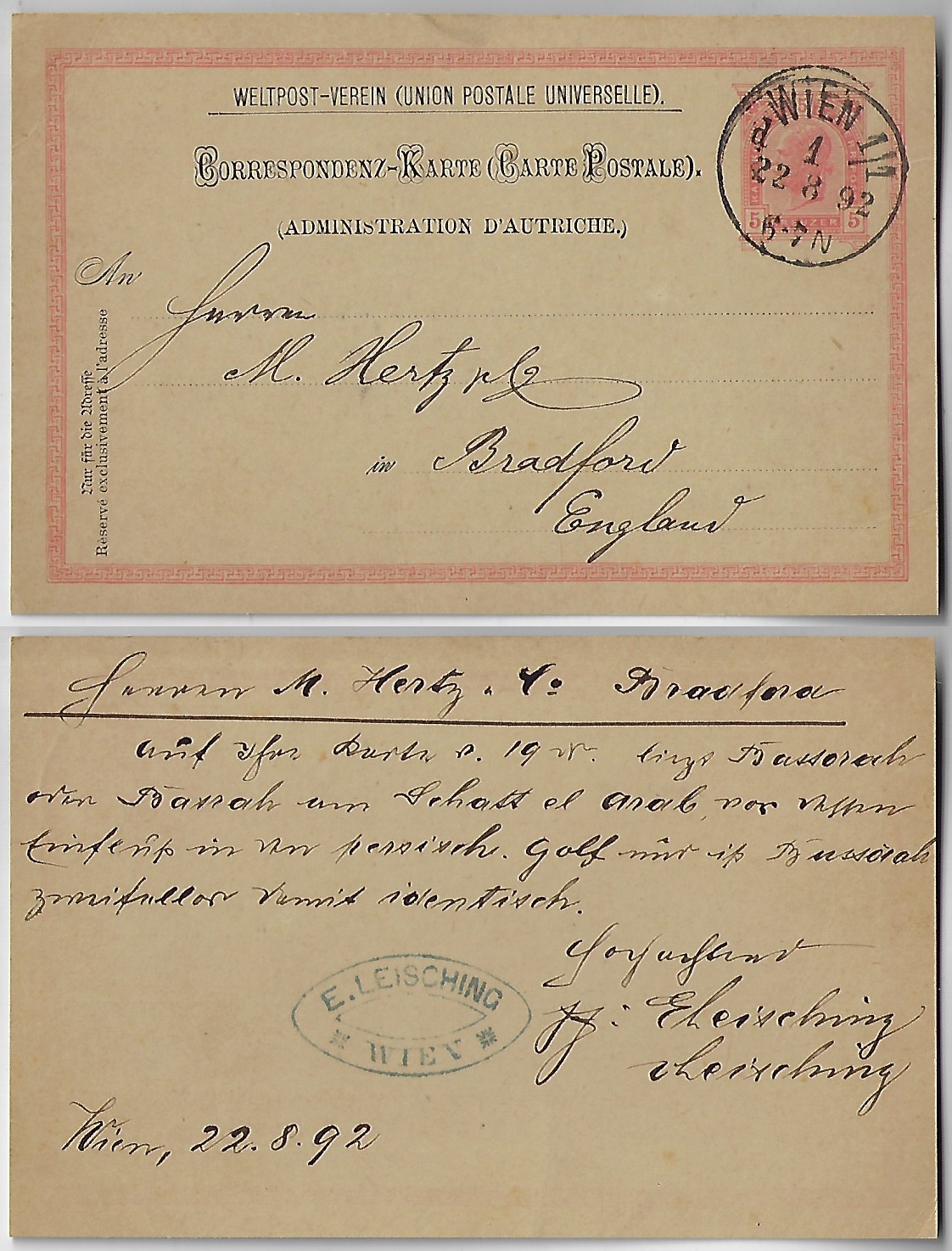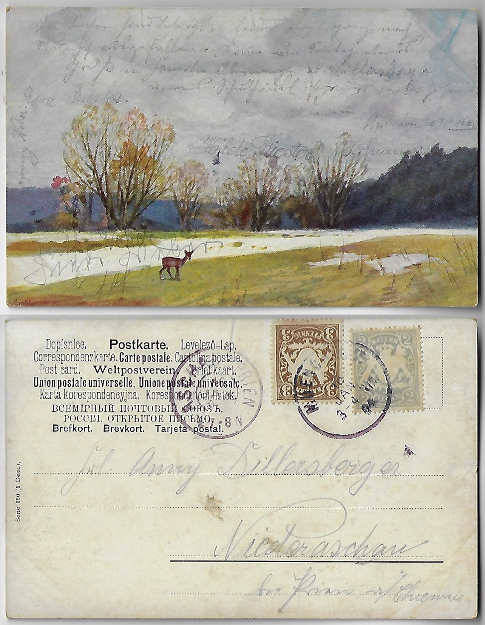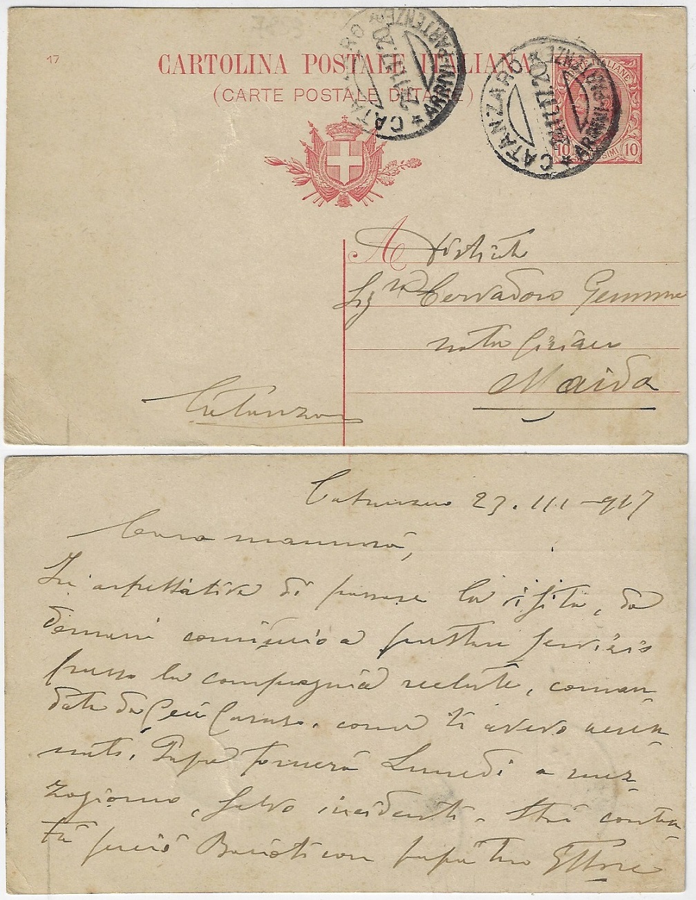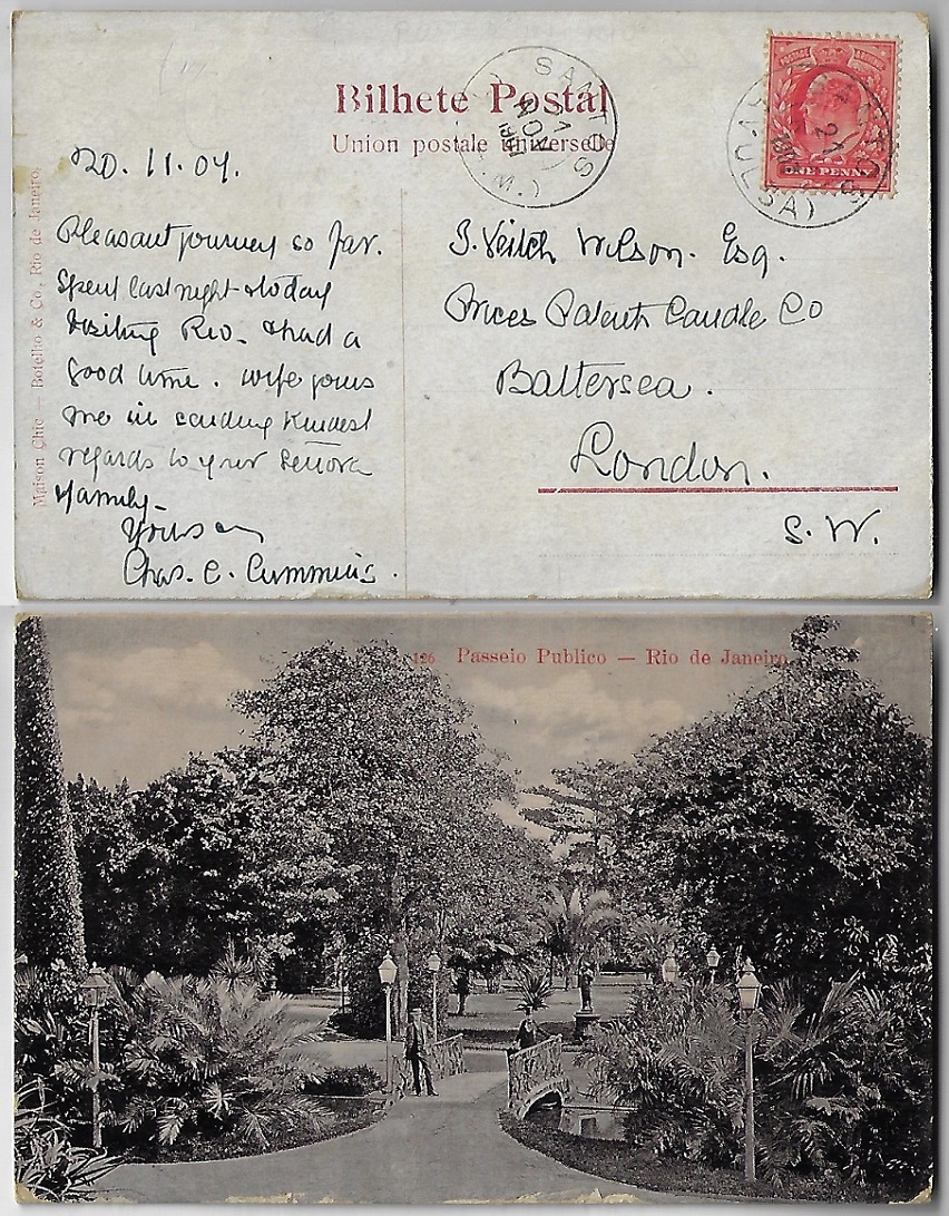 | 80502 | Argentina, 1917, inteiro postal tipo bilhete enviado de Baía Blanca (15/2) para Pelotas, passagem por Buenos Aires (17/2), selo impresso 4 Centavos + adicional 1 Centavo para porte internacional | 10,00 | Foto |