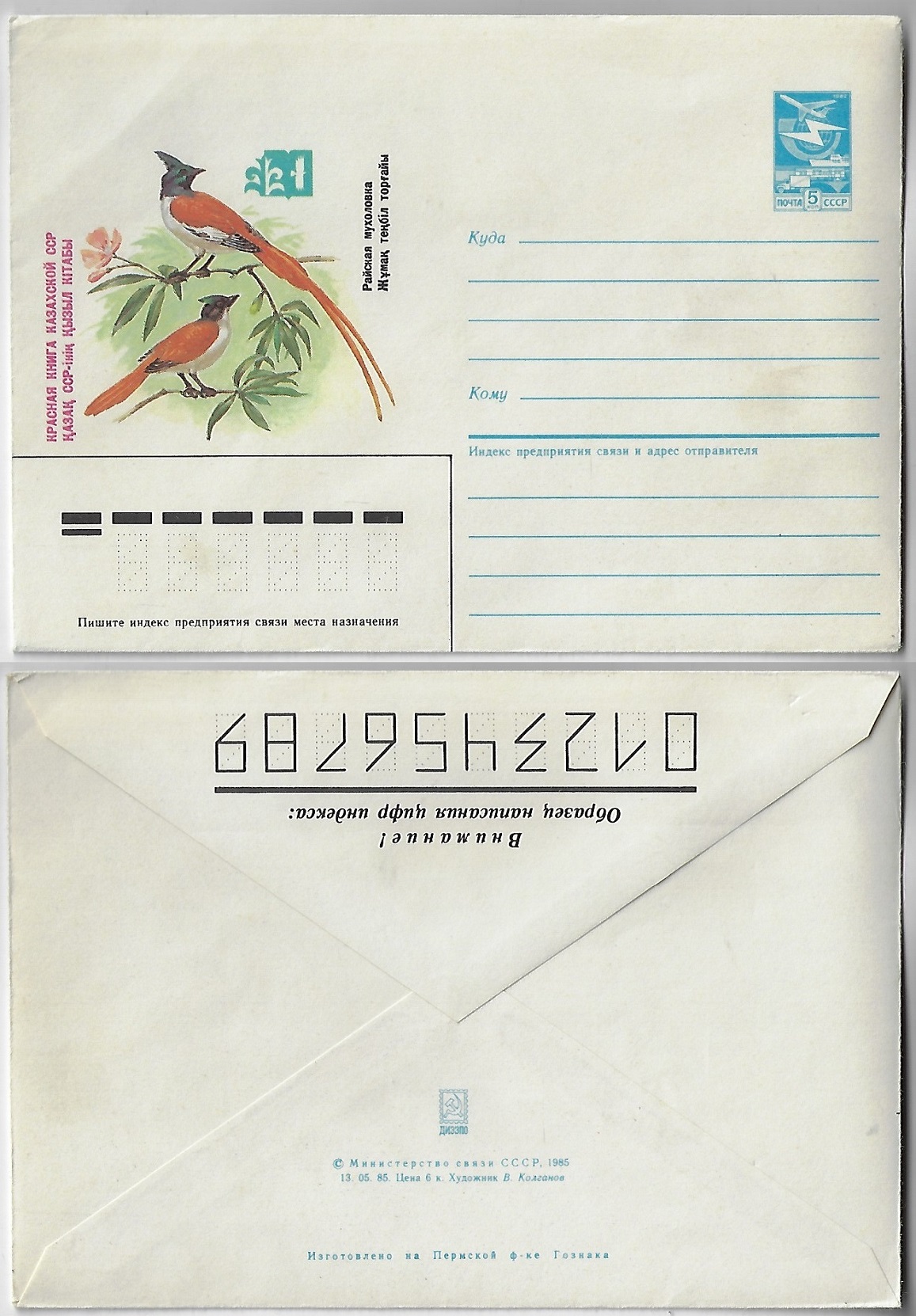 | 77903 | URSS, 1985, inteiro postal tipo envelope com gravura da Ave Papa-Moscas do Paraíso de Amur, sem uso | 10,00 | Foto |