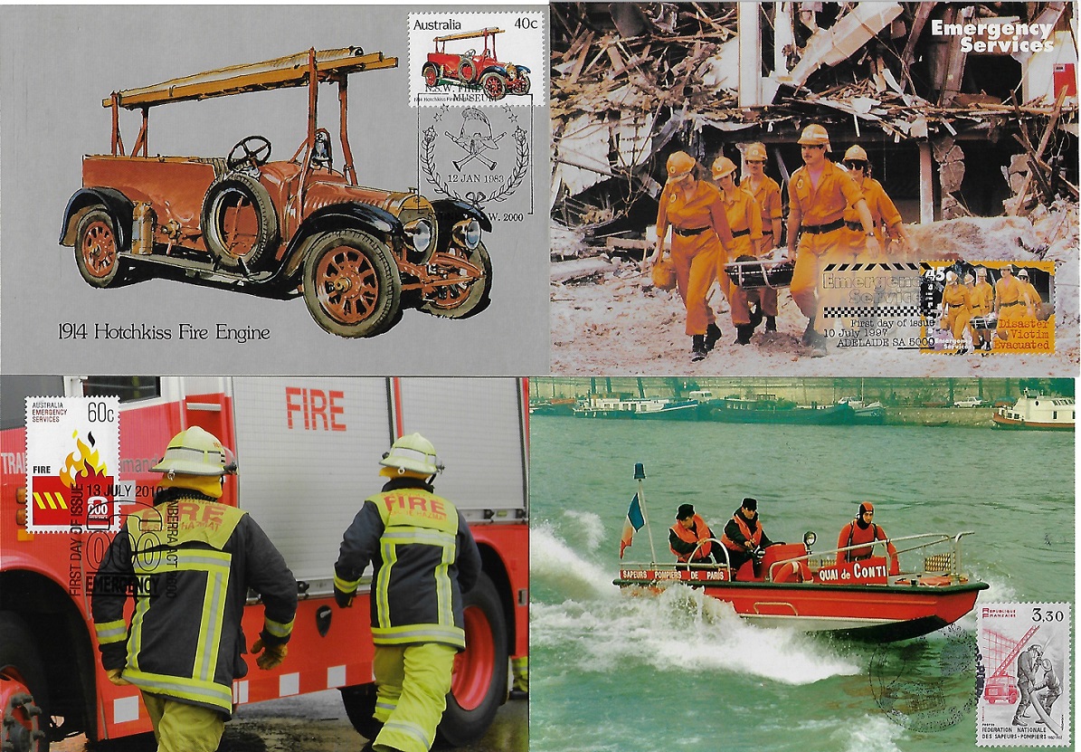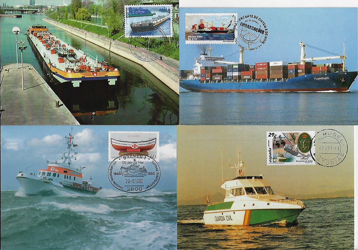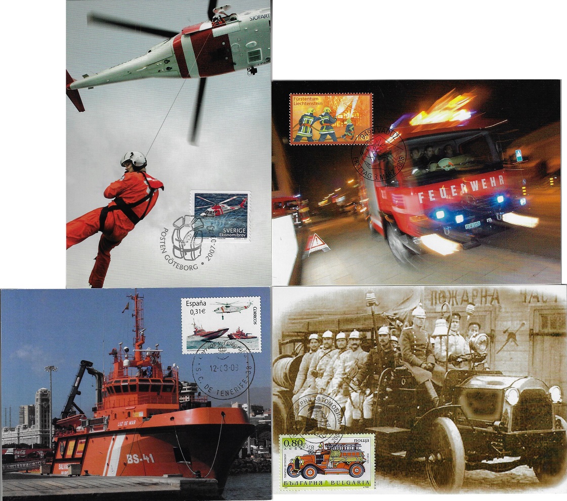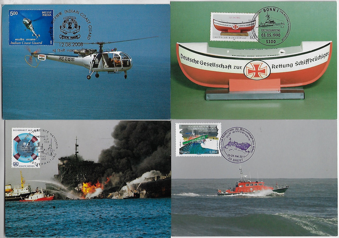 | 78732 | Alemanha, França, Índia, Nações Unidas, 1983/2017, 4 máximos postais alusivos a Guarda Costeira, Incêndio, Bombeiro, Navio, Helicóptero | 30,00 | Foto |