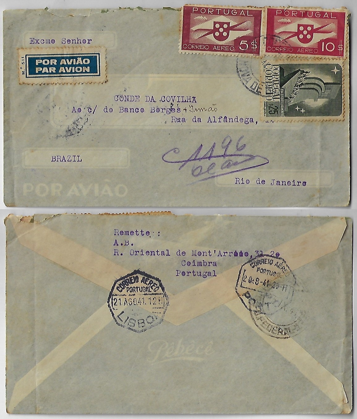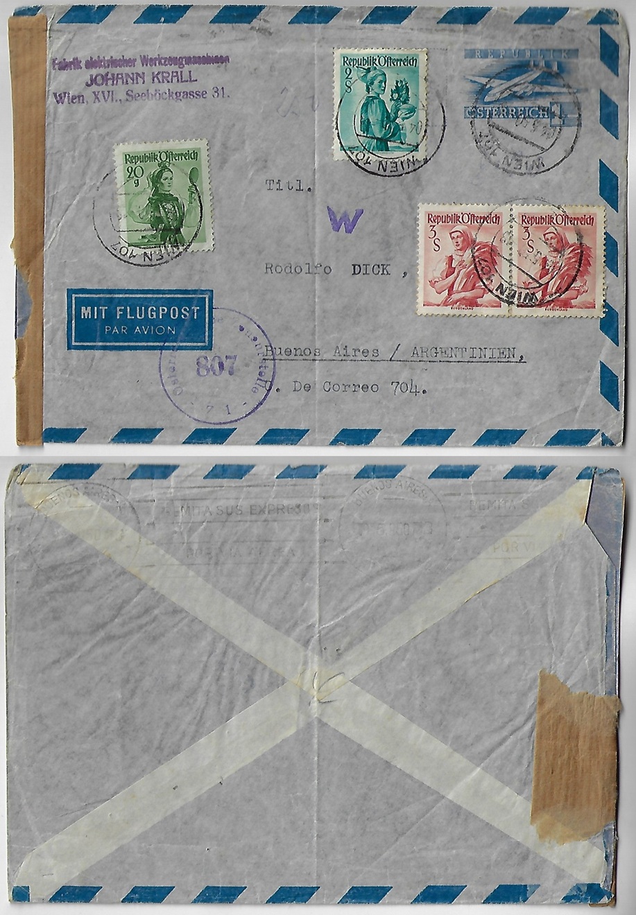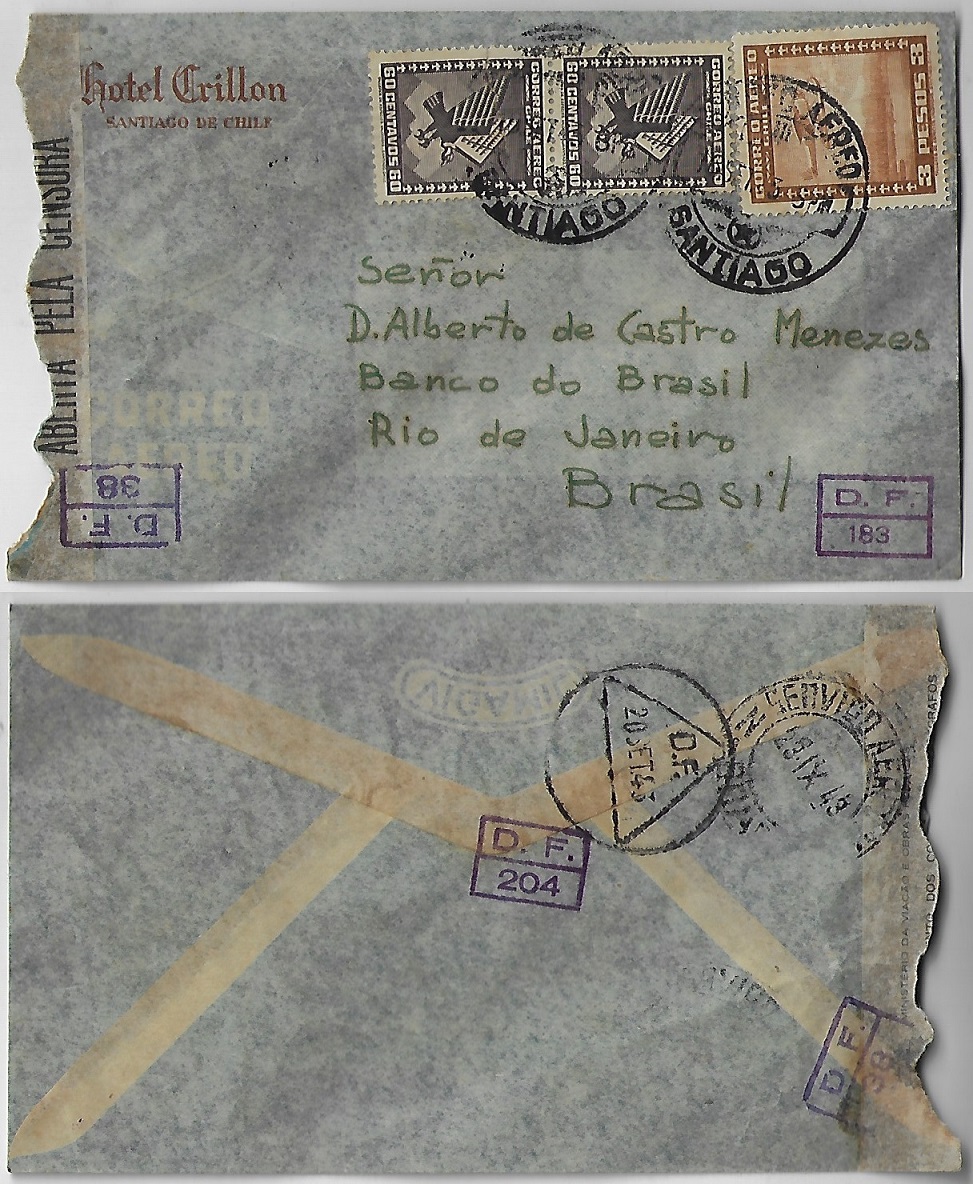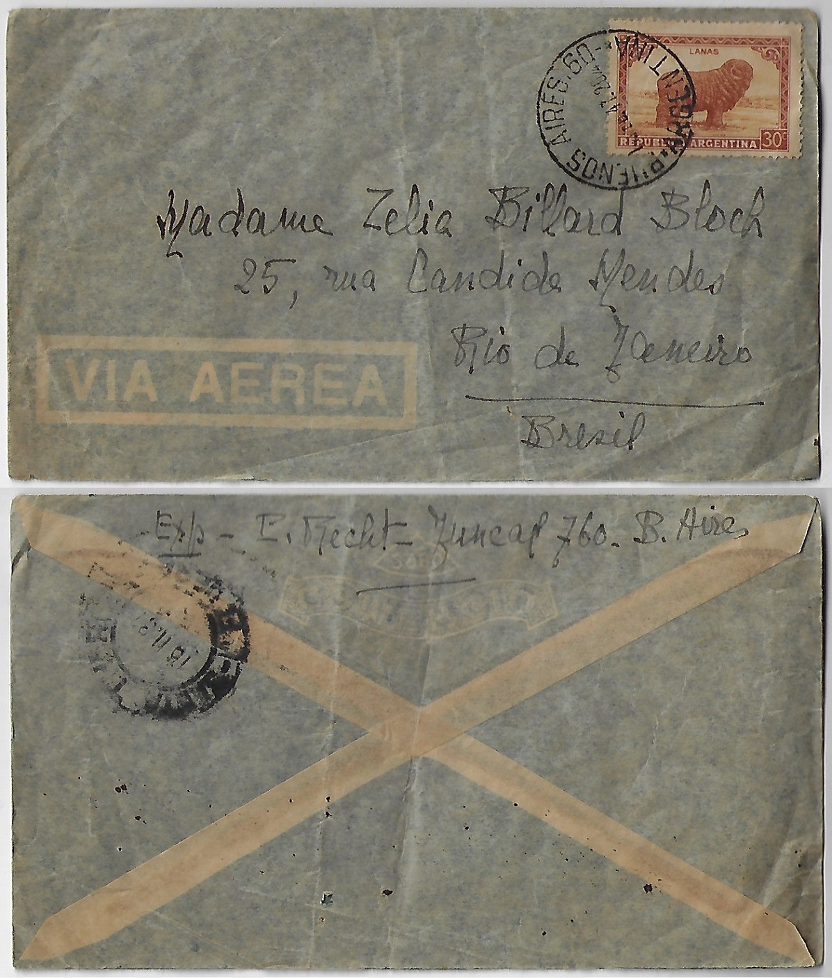 | 80774 | Argentina, 1947, envelope aéreo enviado de Buenos Aires (14/2) para Rio de Janeiro (16/2), porteado com selo Ovelha | 10,00 | Foto |