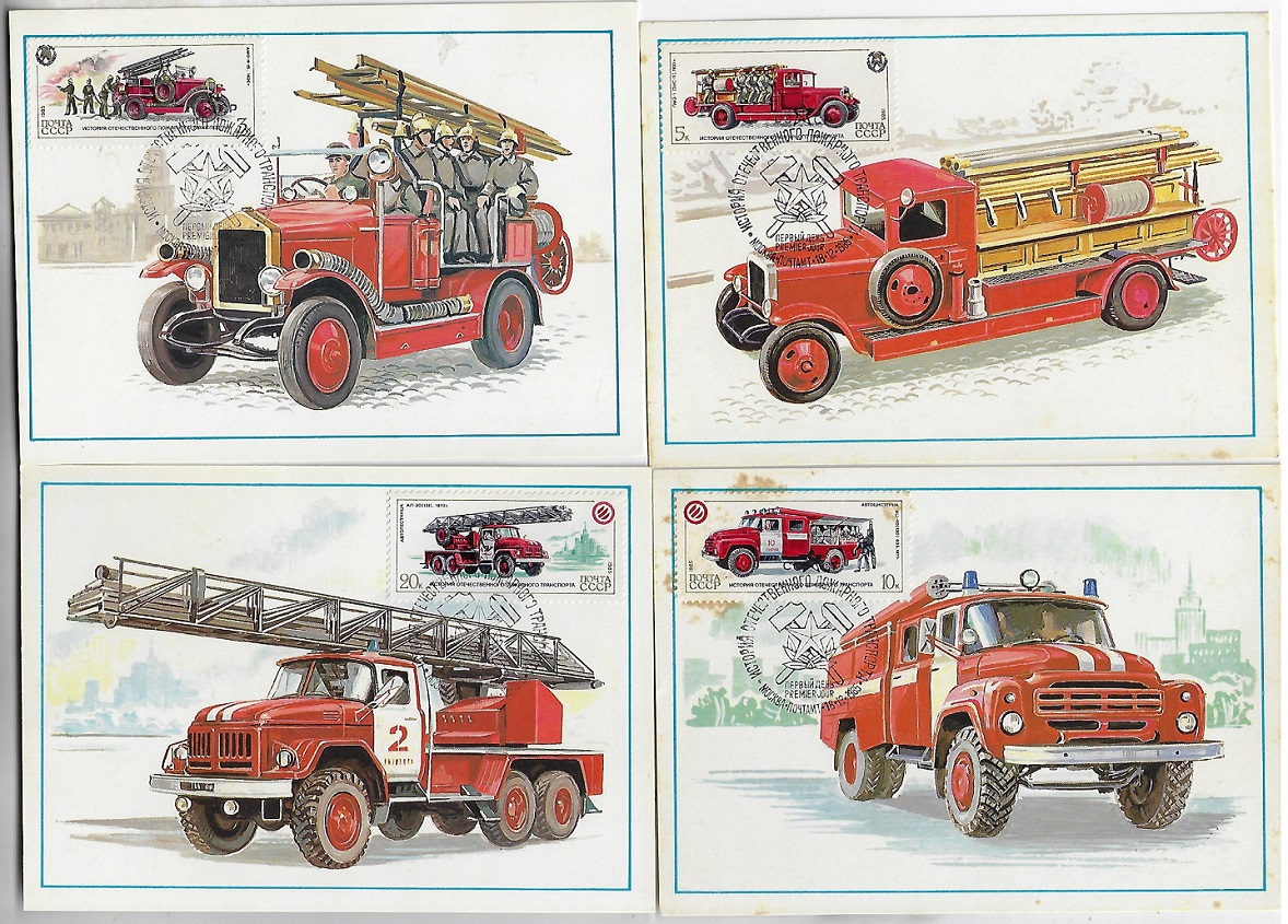 | 78735 | URSS, 1985, 4 máximos postais alusivos a Corpo de Bombeiros, caminhão | 30,00 | Foto |