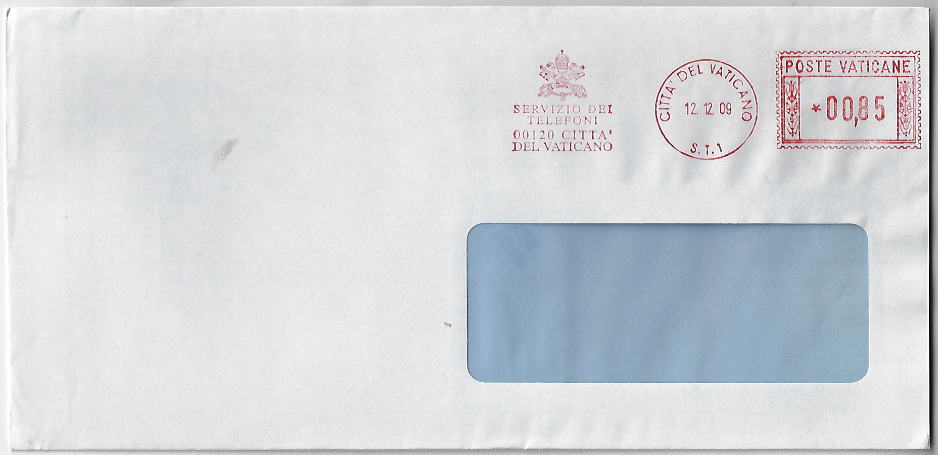 | 78767 | Vaticano, 2009, envelope porteado com franquia mecânica com slogan "Serviço Telefônica", telefone, telecomunicações | 10,00 | Foto |