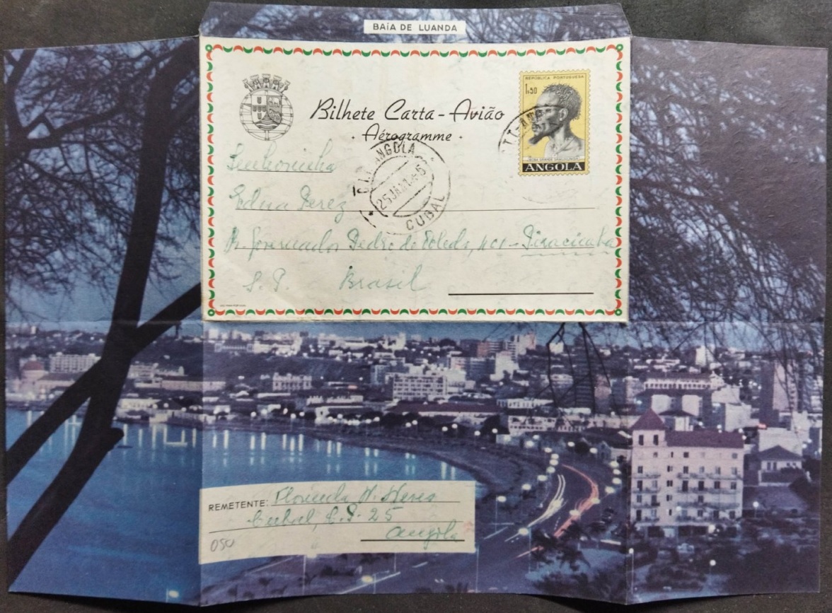 | 78880 | Angola, 1965, inteiro postal tipo aerograma enviado de Cubal (25/1) para Piracicaba, selo Soba Grande Samuhunga 1,50 Escudos, imagem da Baía de Luanda | 150,00 | Foto |