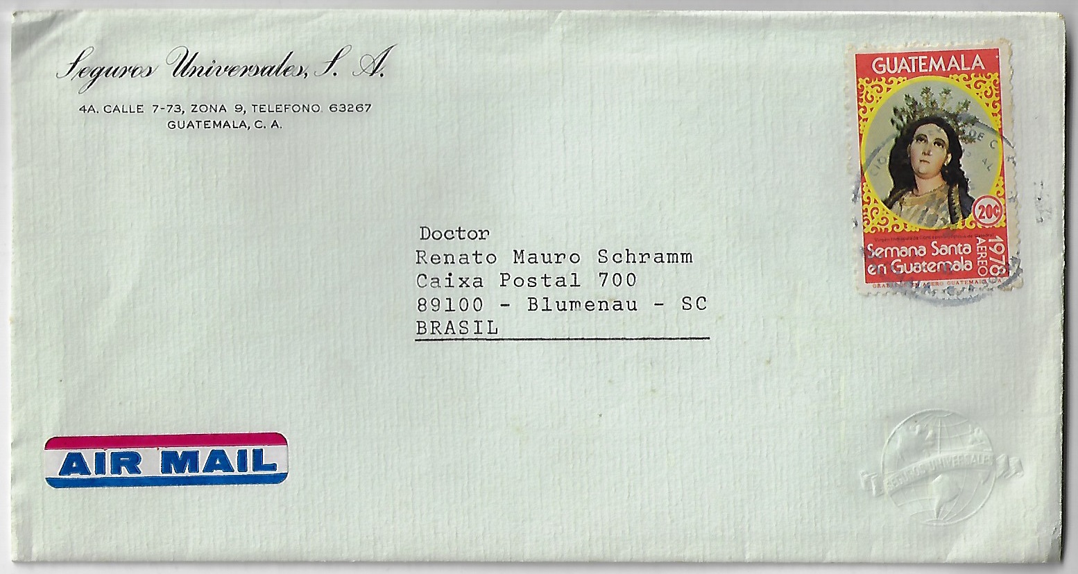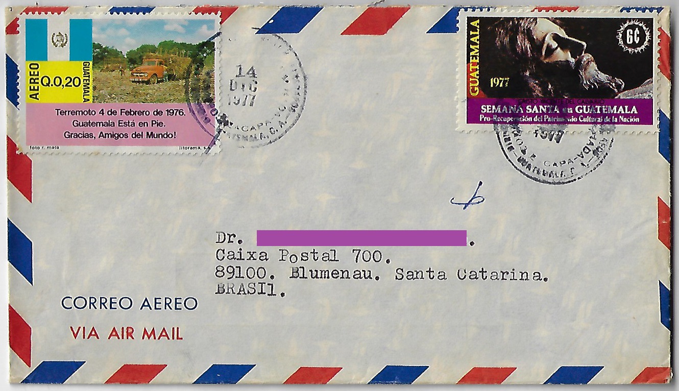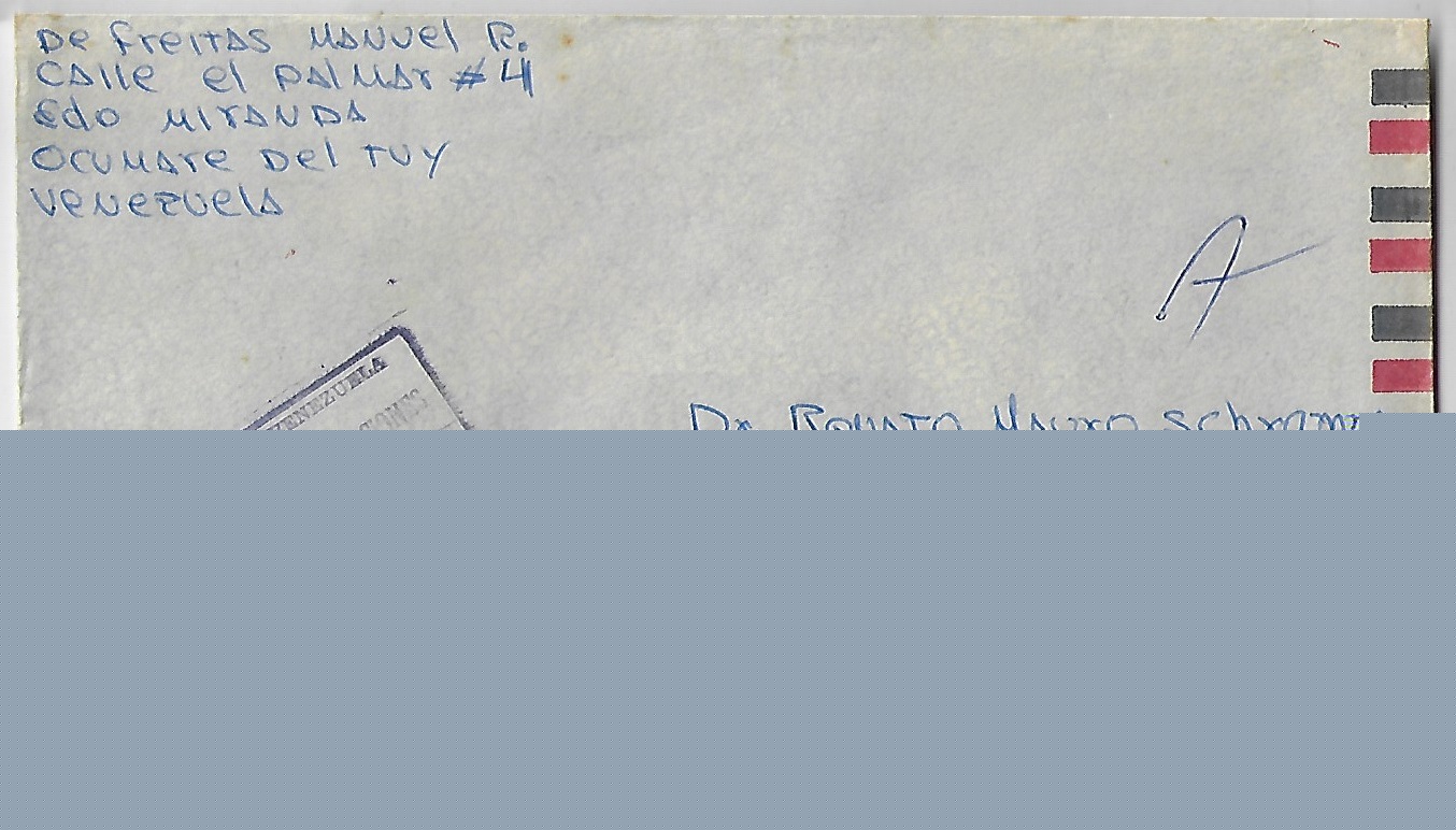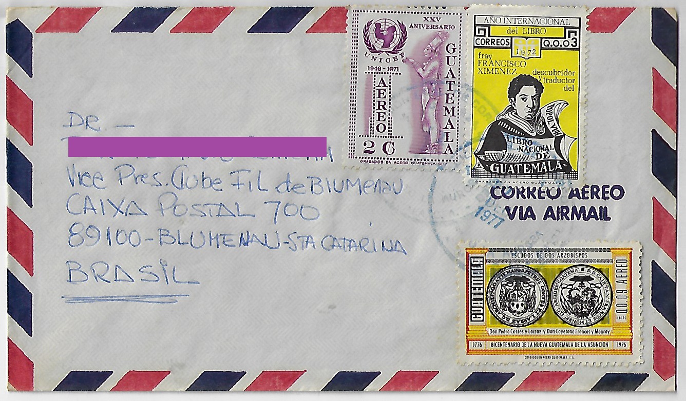 | 84136 | Venezuela, 1977, envelope aéreo enviado de Ocumare del Tuy (18/11) para Blumenau, selo Declaração de Bogotá 60 Cents | 10,00 | Foto |