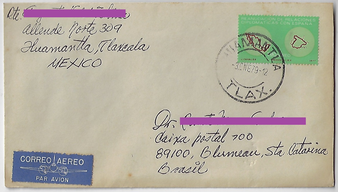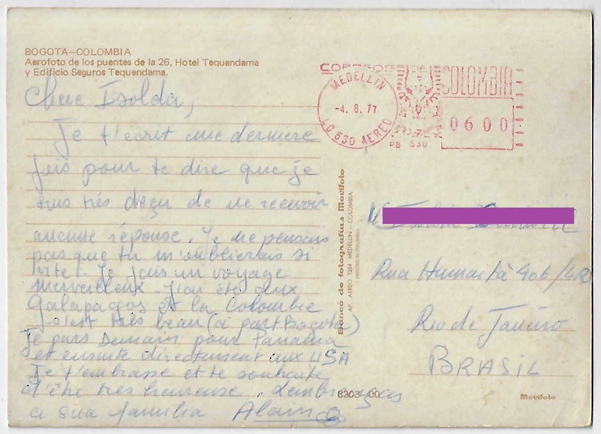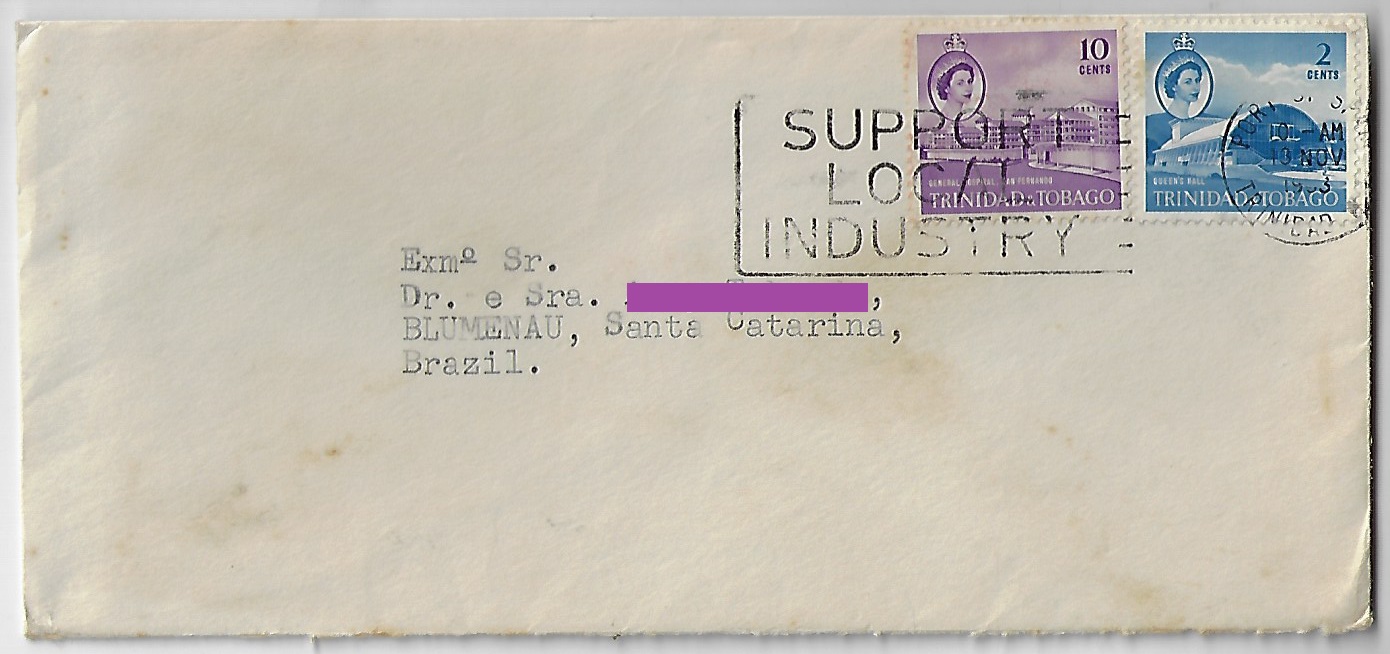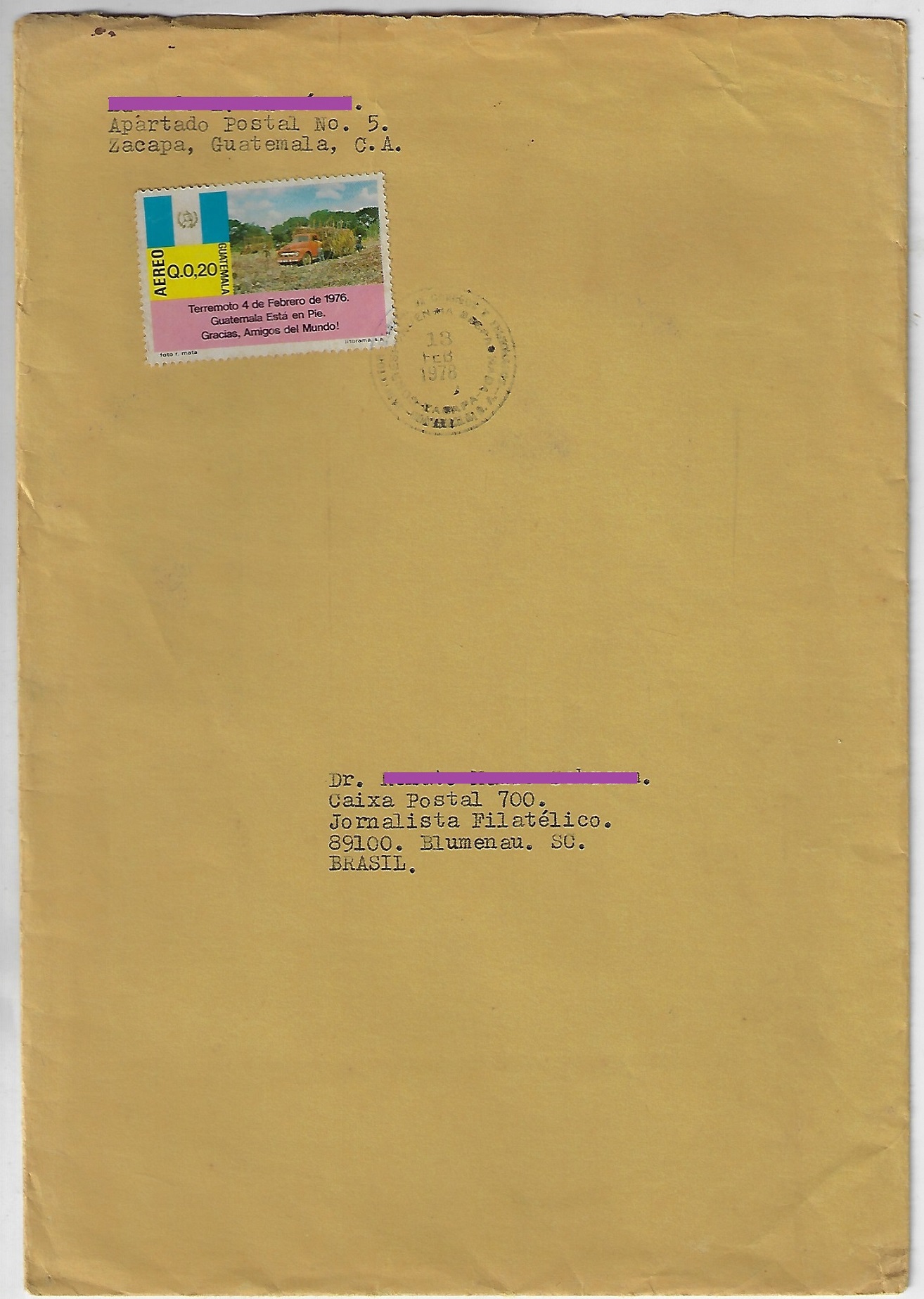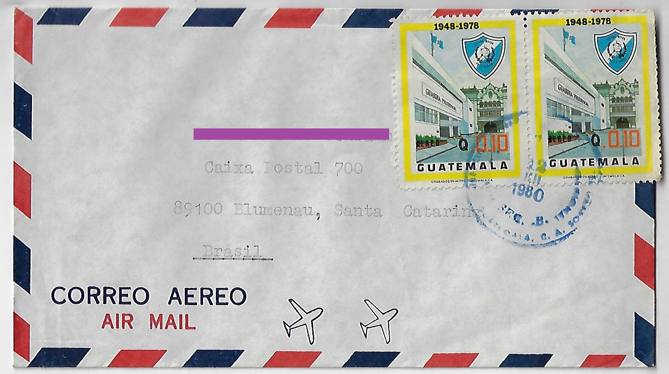 | 84136 | Venezuela, 1977, envelope aéreo enviado de Ocumare del Tuy (18/11) para Blumenau, selo Declaração de Bogotá 60 Cents | 10,00 | Foto |