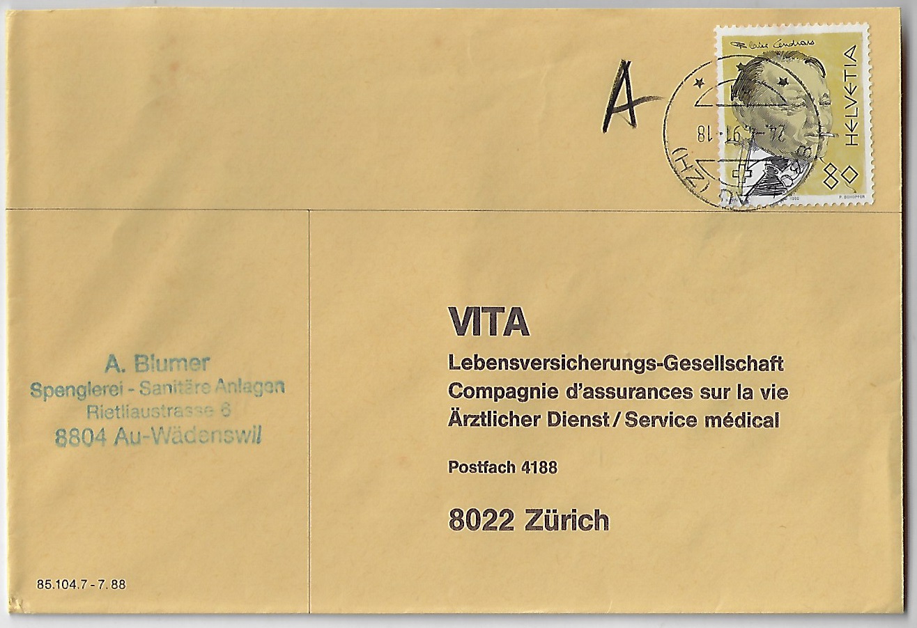 | 82726 | Zimbábue, 1985, envelope aéreo de Harare (12/7) para Kilchberg / Suíça, par de selos 26 Cents satélite de comunicações Intelsat V | 10,00 | Foto |