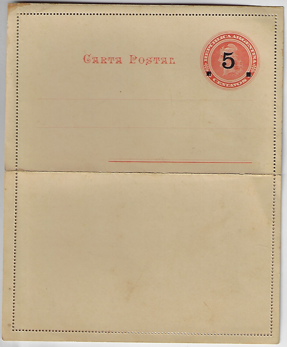 | 79653 | Argentina, 1900s, inteiro postal tipo Carta Bilhete 4 Centavos sobrestampado 4 Centavos, sem uso | 10,00 | Foto |