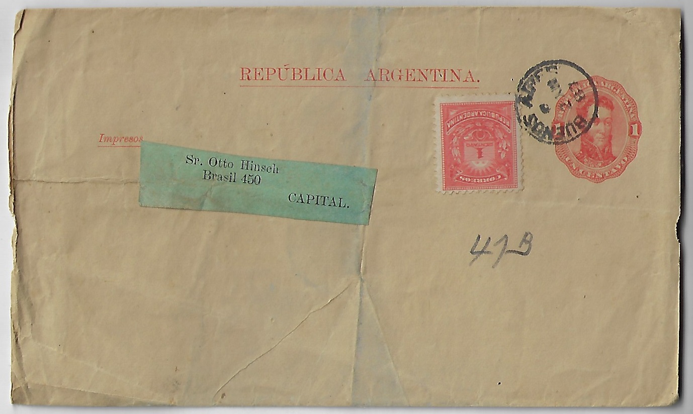 | 79969 | Argentina, 1910s, inteiro postal tipo cinta para jornais selo 2 Centavos circulado em Buenos Aires | 10,00 | Foto |