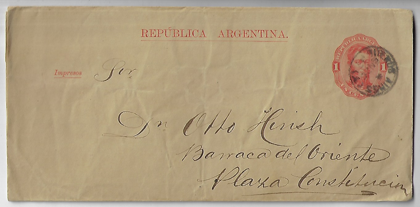 | 79983 | Argentina, 1880s, inteiro postal tipo cinta para jornais selo 1 Centavo circulado em Buenos Aires | 10,00 | Foto |