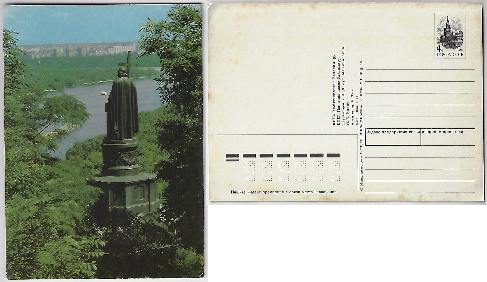 | 80381 | URSS, 1990, inteiro postal tipo bilhete retratando o Monumento ao Príncipe Volodymyr, em Kiev, capital da Ucrânia, sem uso | 10,00 | Foto |