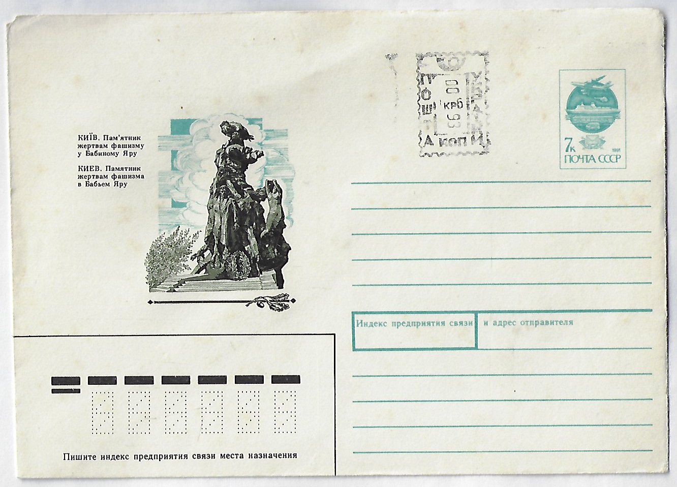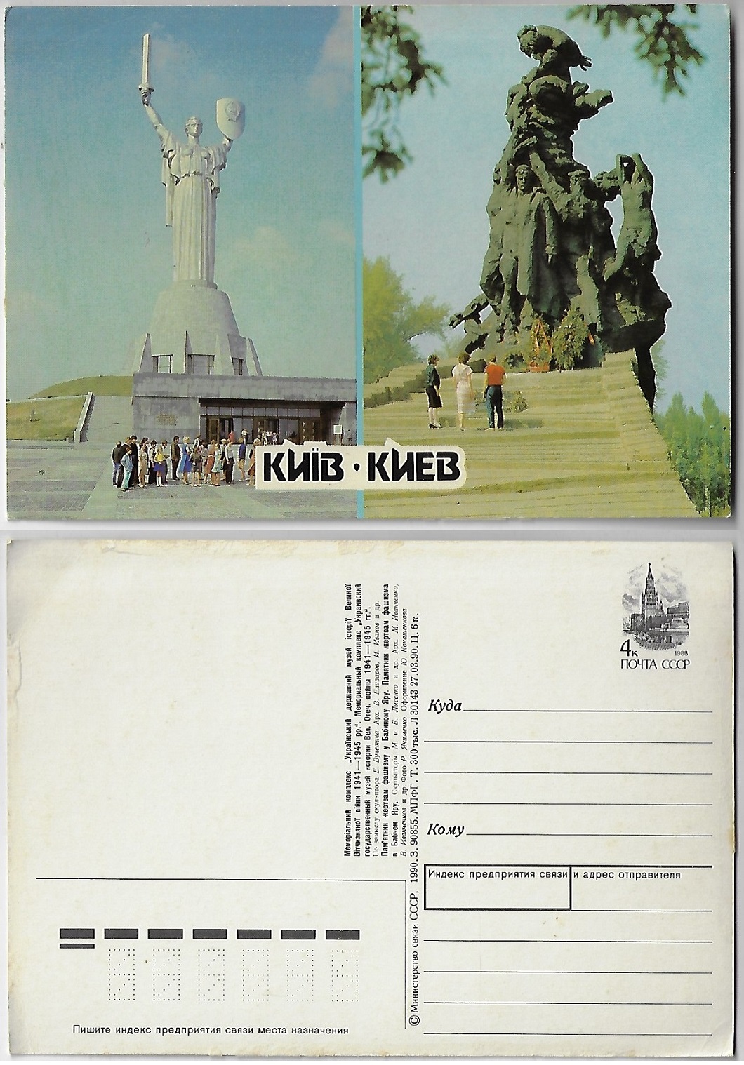 | 80456 | URSS, 1990, inteiro postal tipo bilhete retratando o Museu Estatal Ucraniano da História da Grande Guerra Patriótica 1941-1945 e Monumento às vítimas do fascismo em Babyny Yar, em Kiev, capital da Ucrânia, sem uso | 10,00 | Foto |