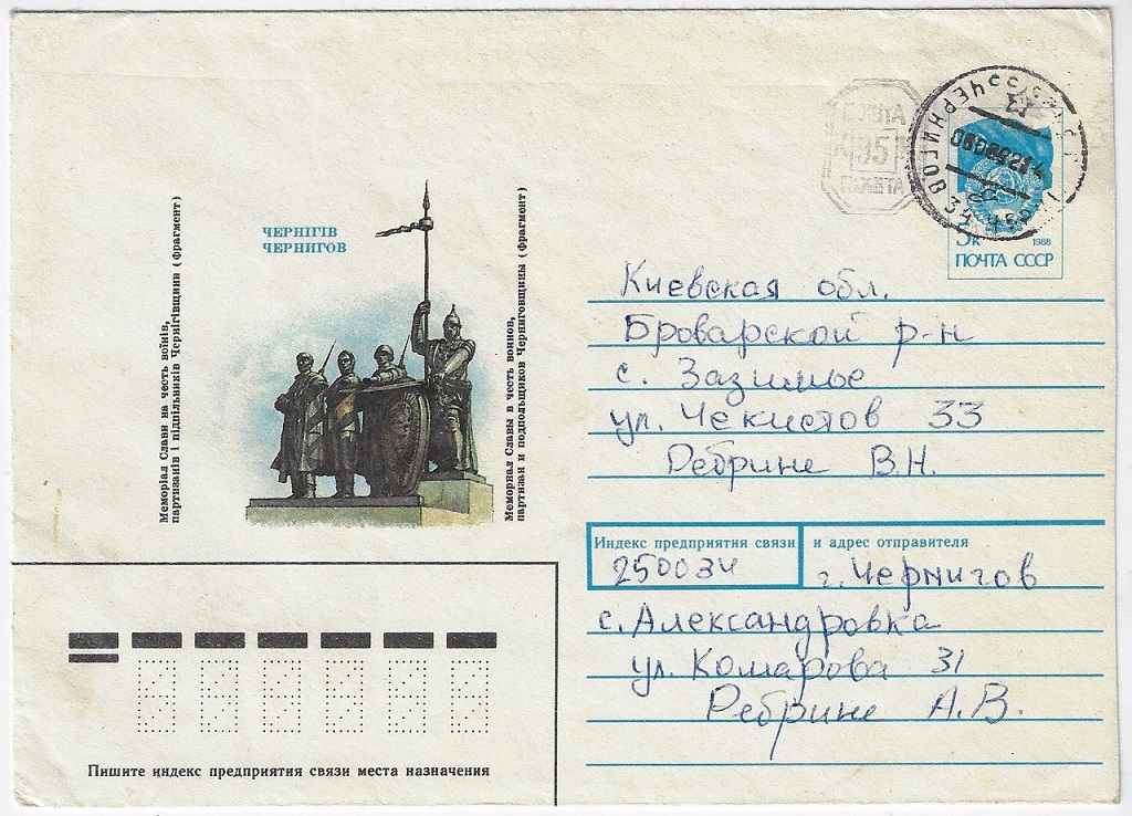 | 80781 | URSS, 1990, inteiro postal retratando monumento aos soldados defensores, em Chernihiv, atual Ucrânia, desde a época medieval, circulado | 10,00 | Foto |