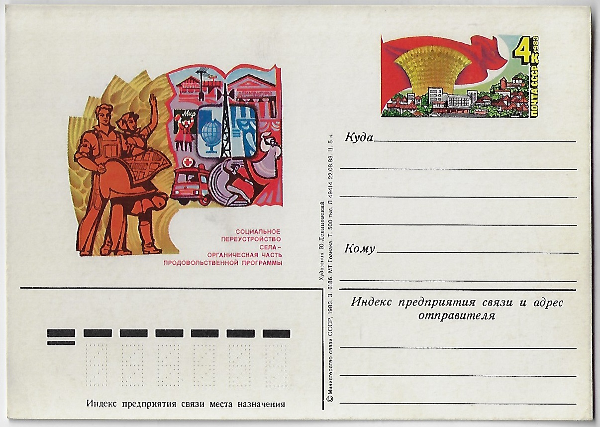 | 81727 | URSS, 1983, inteiro postal tipo bilhete alusivo a Reconstrução Social, Programa Alimentar, sem uso | 10,00 | Foto |