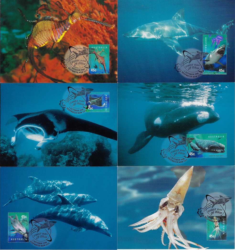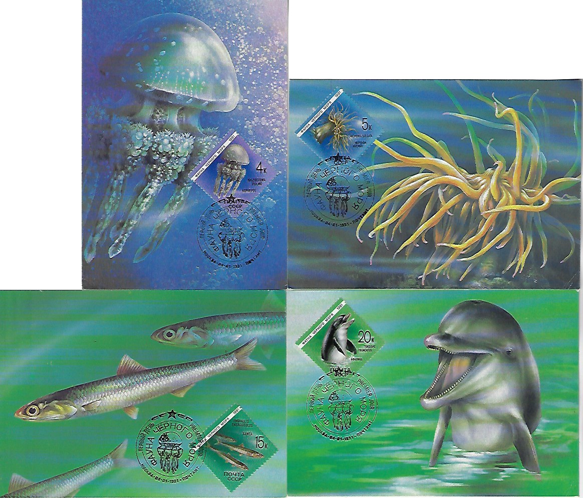 | 84704 | URSS, 1991, 4 máximos postais alusivos a Fauna Marinha, Animal, Anêmona, Golfinho, Peixe, Água-Viva | 28,00 | Foto |