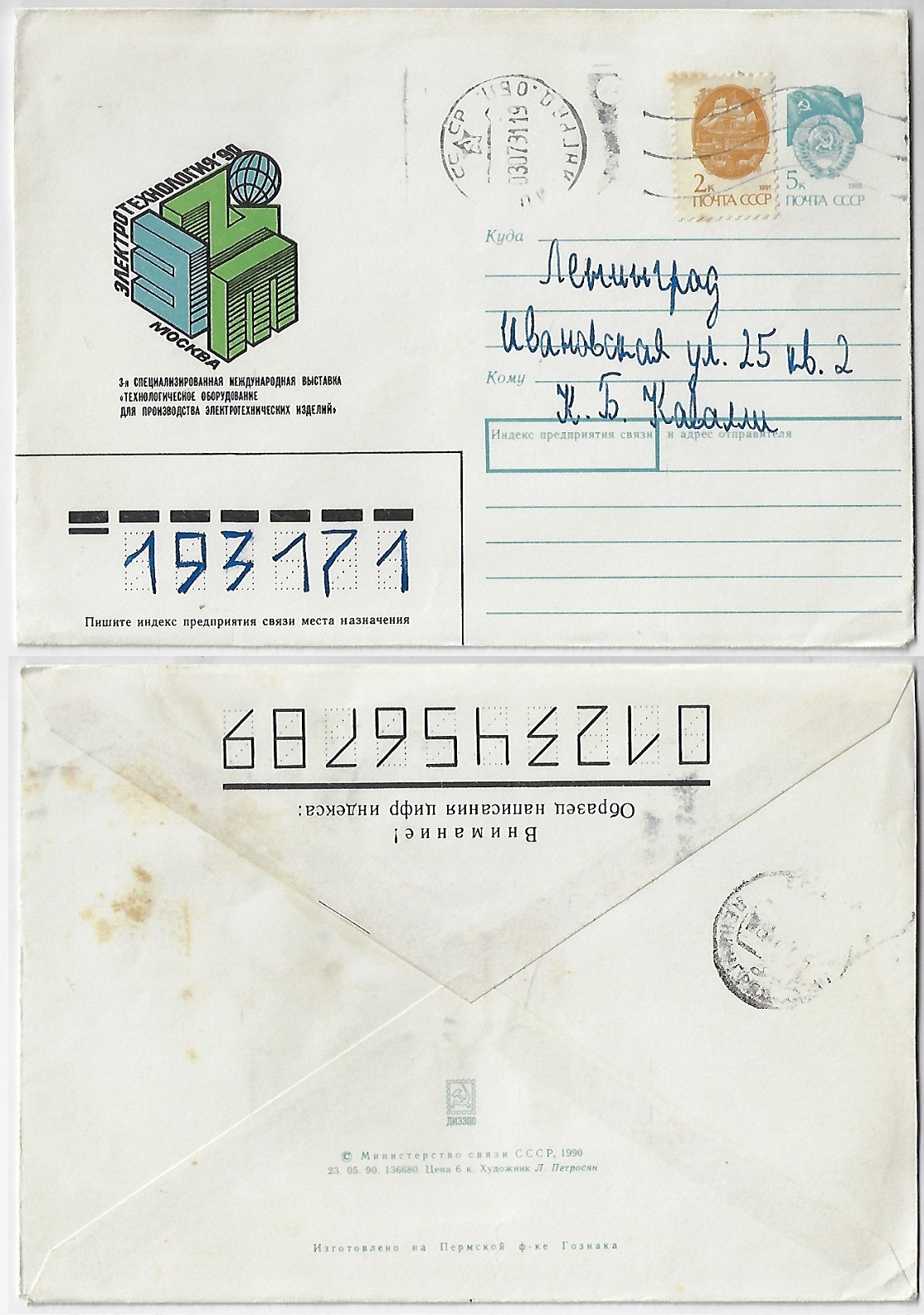 | 82076 | URSS, 1990, inteiro postal tipo envelope alusivo a 3. Exposição Internacional Especializada de Equipamentos Tecnológicos para Fabricação de Produtos Elétricos | 10,00 | Foto |