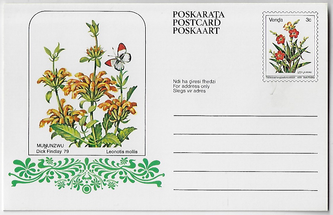 | 82115 | Venda, 1979, inteiro postal tipo bilhete de Flor, Borboleta, sem uso | 10,00 | Foto |
