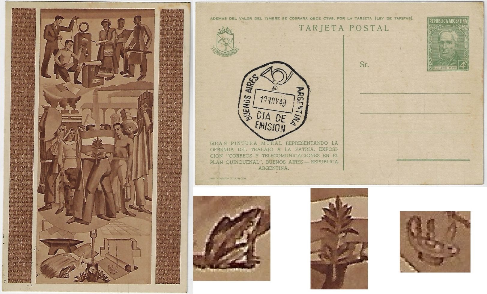 | 82625 | Argentina, 1949, inteiro postal tipo bilhete Exposição Correio e Telecomunicações no Plano Quinquenal, Oferta de Trabalho, selo 4 Centavos, carimbo de 1º dia de circulação | 14,00 | Foto |