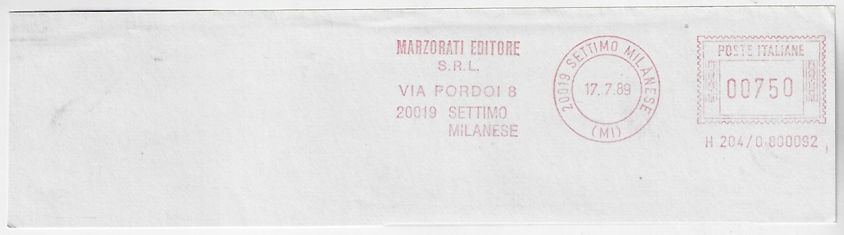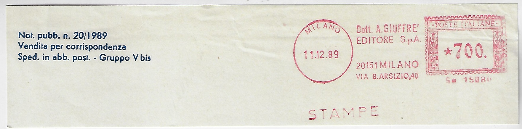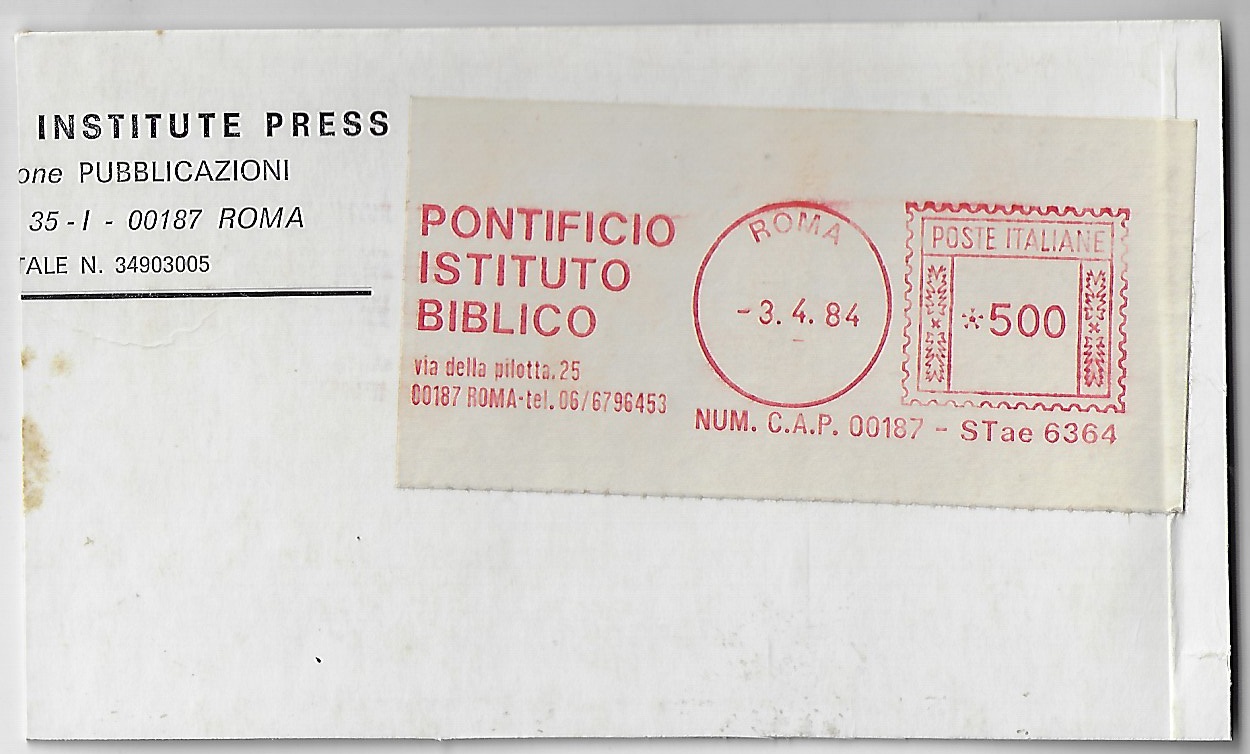 | 70709 | Vaticano, 1977, fragmento de envelope porteado com franquia mecânica Francotyp com slogan da Livraria Editorial do Vaticano | 10,00 | Foto |