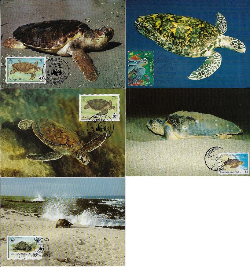 | 83642 | Anguilla, França, Grécia e Seychelles, 1983/2002, 5 máximos postais retratando Tartarugas, Animal, Fauna, Réptil | 35,00 | Foto |
