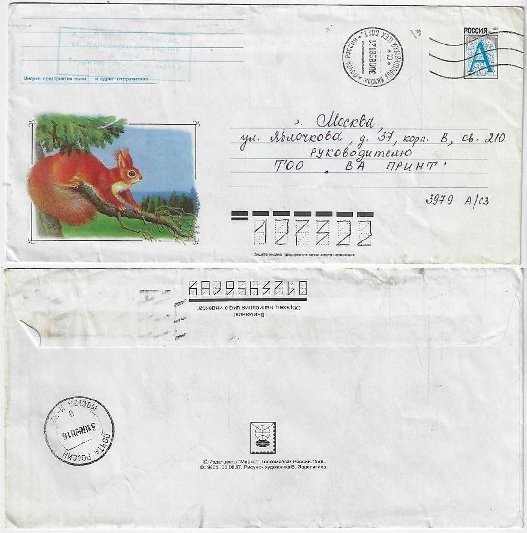 | 78342 | URSS, 1992, inteiro postal tipo envelope enviado para Moscou com gravura de Esquilo em Árvore | 10,00 | Foto |