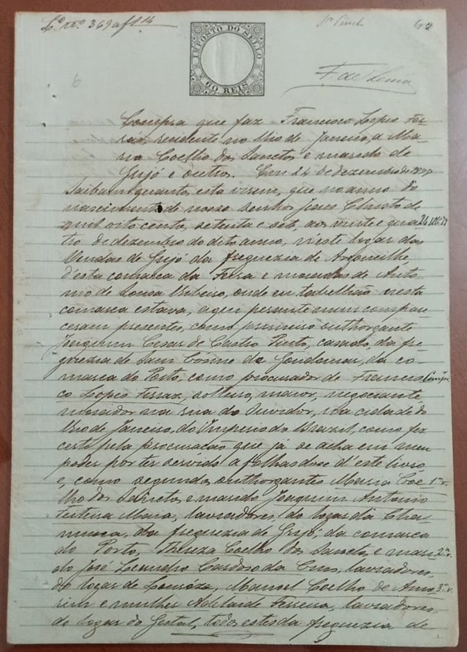 | 1194 | Portugal, 1900, parte de um Processo das Comarcas do Rio de Janeiro e de Penafiel com 26 folhas entre as de nº 41 e 69, faltam as folhas 42, 44, 45, destas folhas, 25 são inteiros fiscais com selo impresso de 80 Réis | 380,00 | Foto |