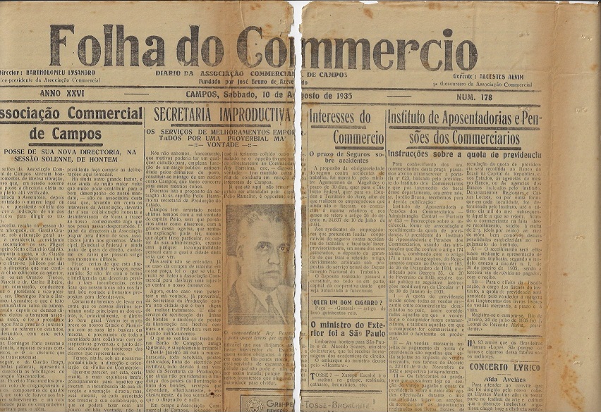 | 1700 | Brasil, 1935, jornal Folha do Comércio, nº 178, de 10/8, selos fiscais do RJ de 200 e 300x2 Réis, dividido ao longo da dobra | 21,00 | Foto |