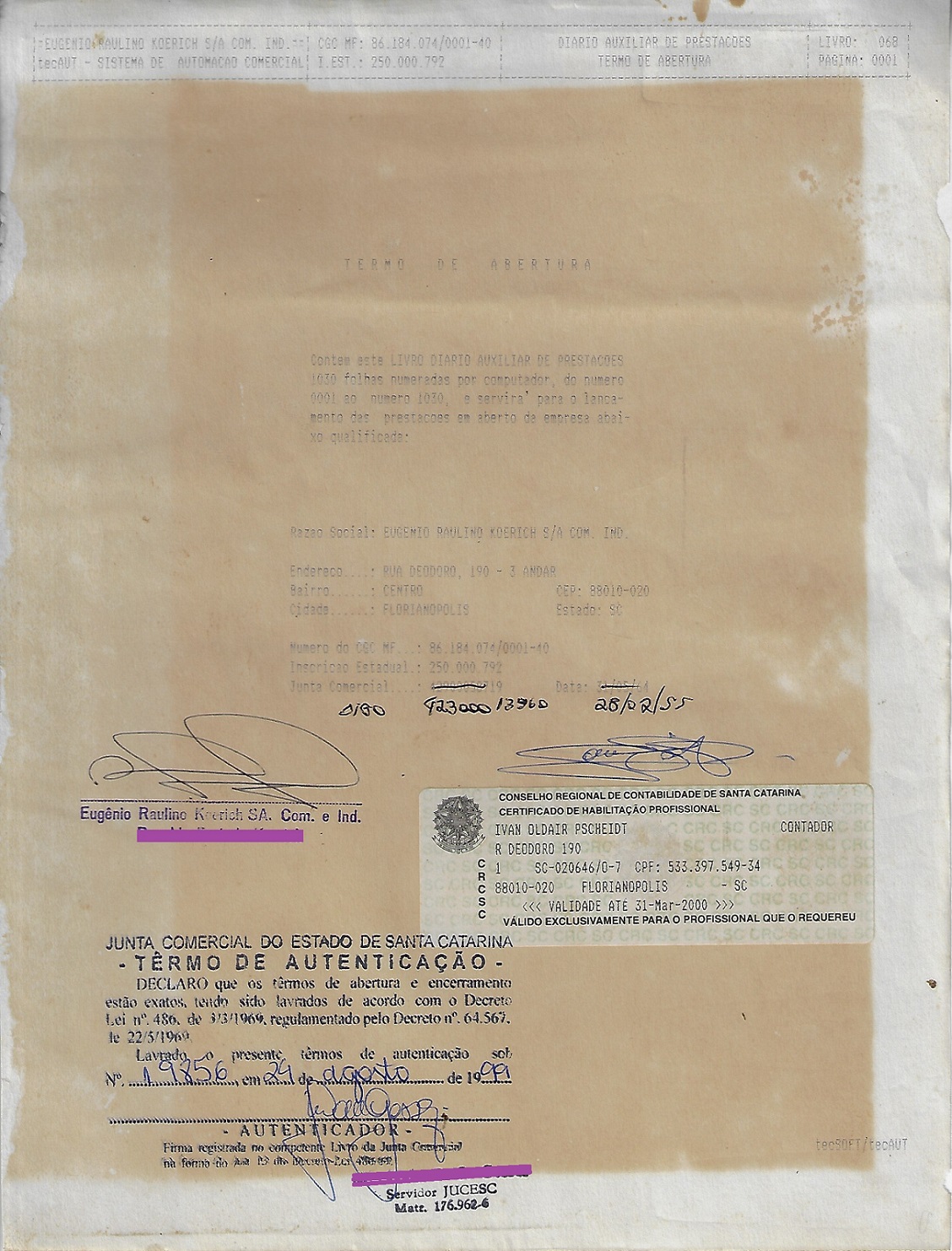 | 60358 | Brasil, 1999, documento com selo de Certificação de Habilitação Profissional do Conselho Regional de Contabilidade de Santa Catarina | 10,00 | Foto |