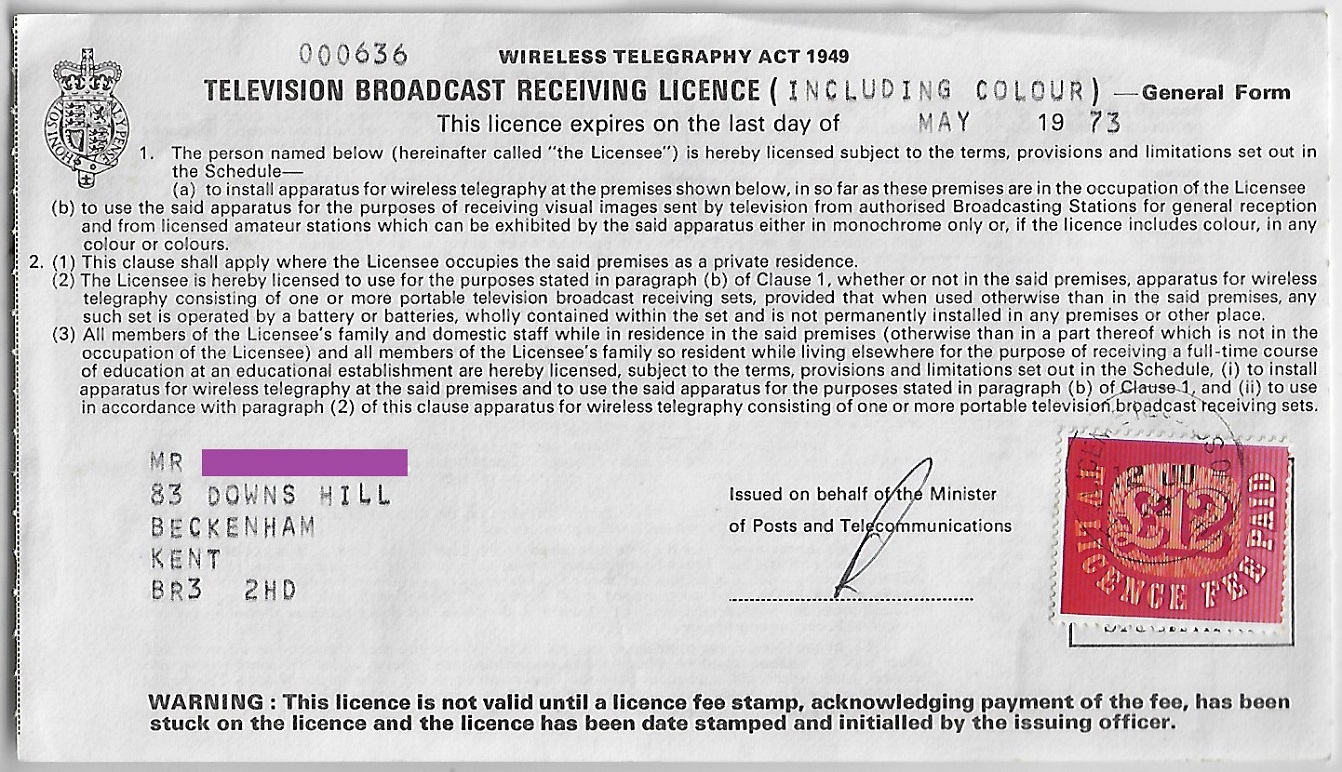 | 79264 | Grã-Bretanha, 1973, Licença de Recebimento de Transmissão de Televisão (incluindo colorida), selo 12 Libras | 25,00 | Foto |