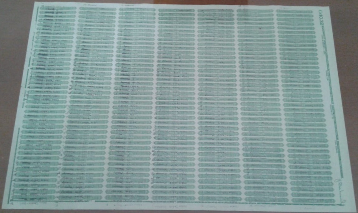 | 81269 | Brasil, 1963, folha completa com 280 selos fiscais do Imposto de Consumo, Cr$0,16, carimbo de empresa de Urussanga / SC, folha com dobras | 250,00 | Foto |