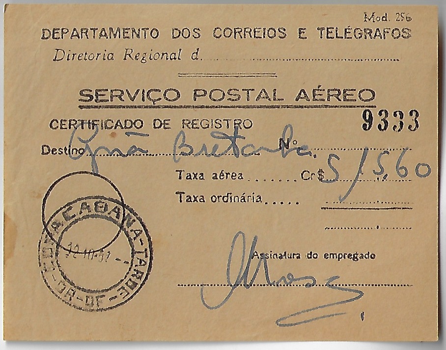 | 77252 | 2025, envelope postado como Remessa Expressa registrada, contrato com Banco do Brasil | 10,00 | Foto |