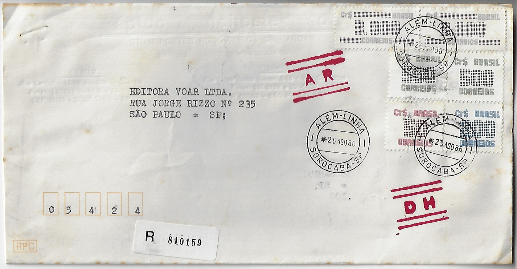 | 84253 | 2025, envelope registrado enviado de São Paulo (13/10) para Balneário Gaivota, porteado selo Serviço de Logística, Empilhadeira | 10,00 | Foto |